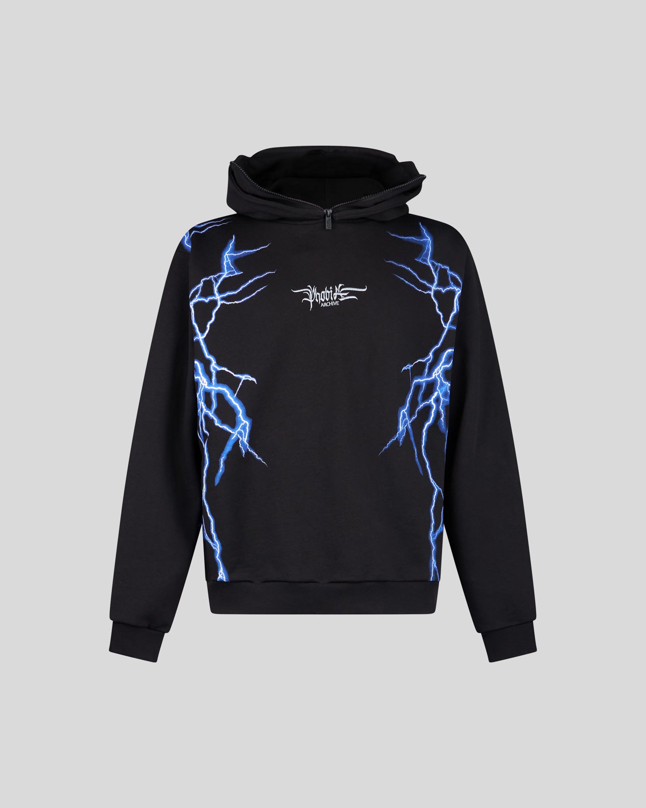 BLACK BALACLAVA HOODIE WITH LIGHTNING BLUE PRINT