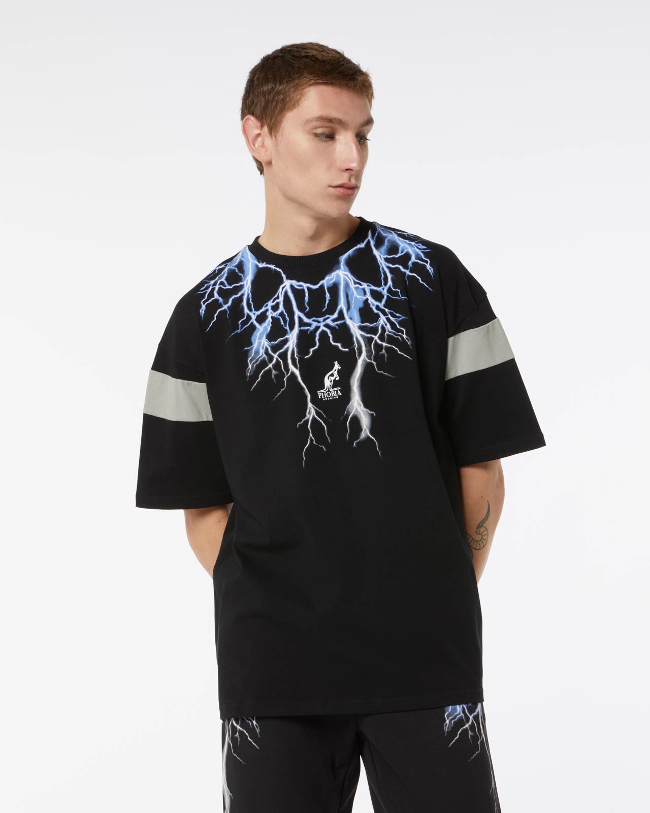 BEIGE T-SHIRT WITH FRONT AND BACK WHITE LIGHTNING