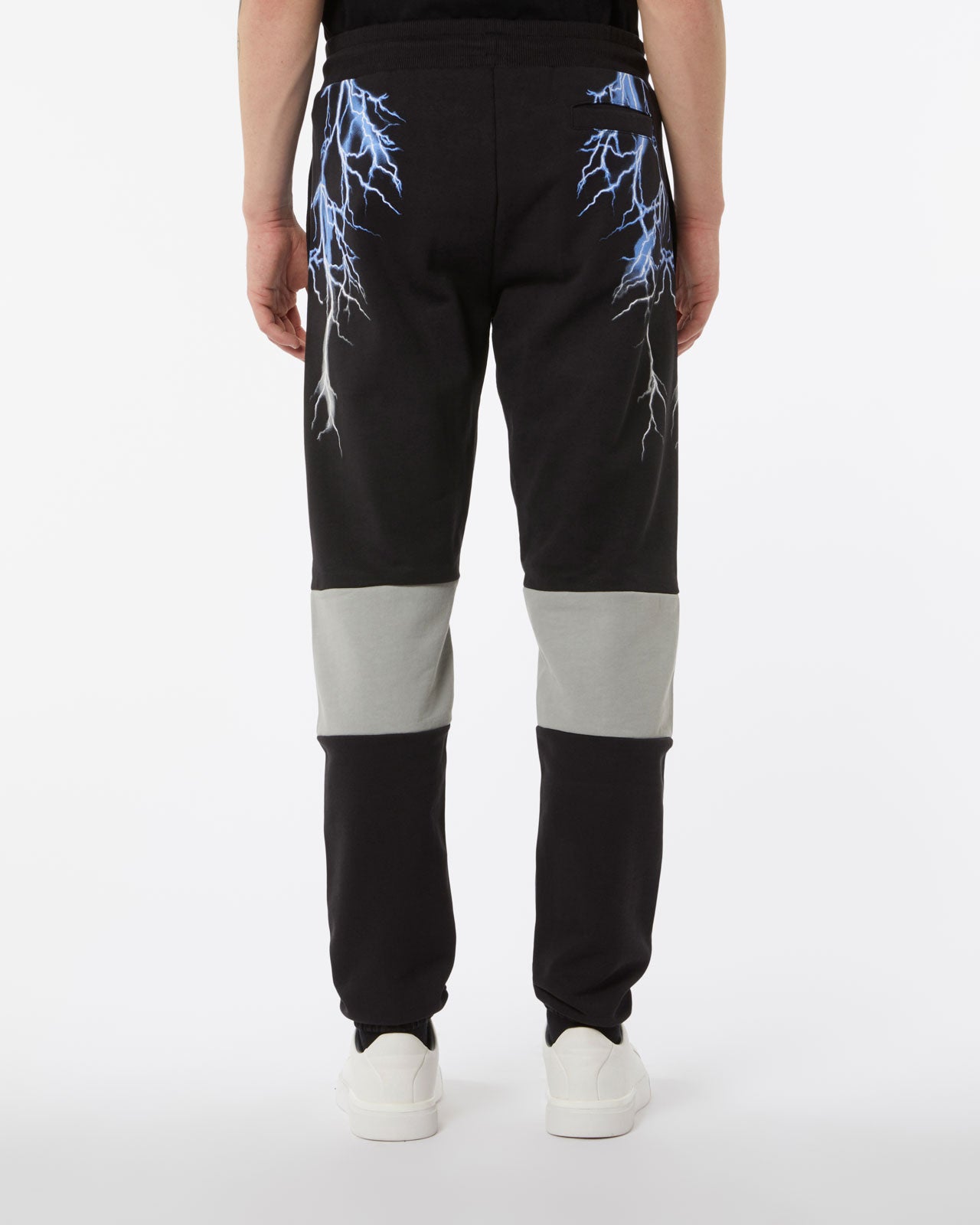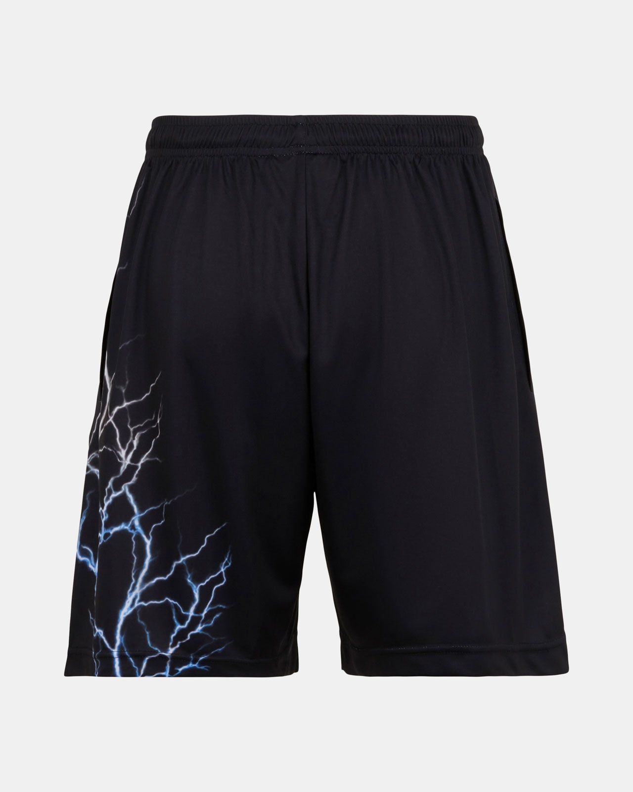 BLACK BASKET SHORTS WITH BLUE LIGHTNING ALL OVER AND EMBROIDERED LOGO