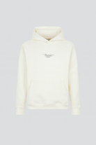 White hoodie with gotic logo and metal label