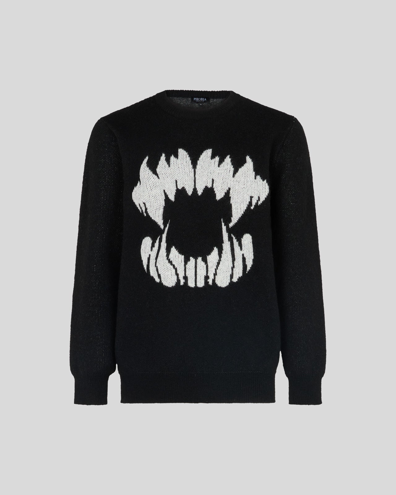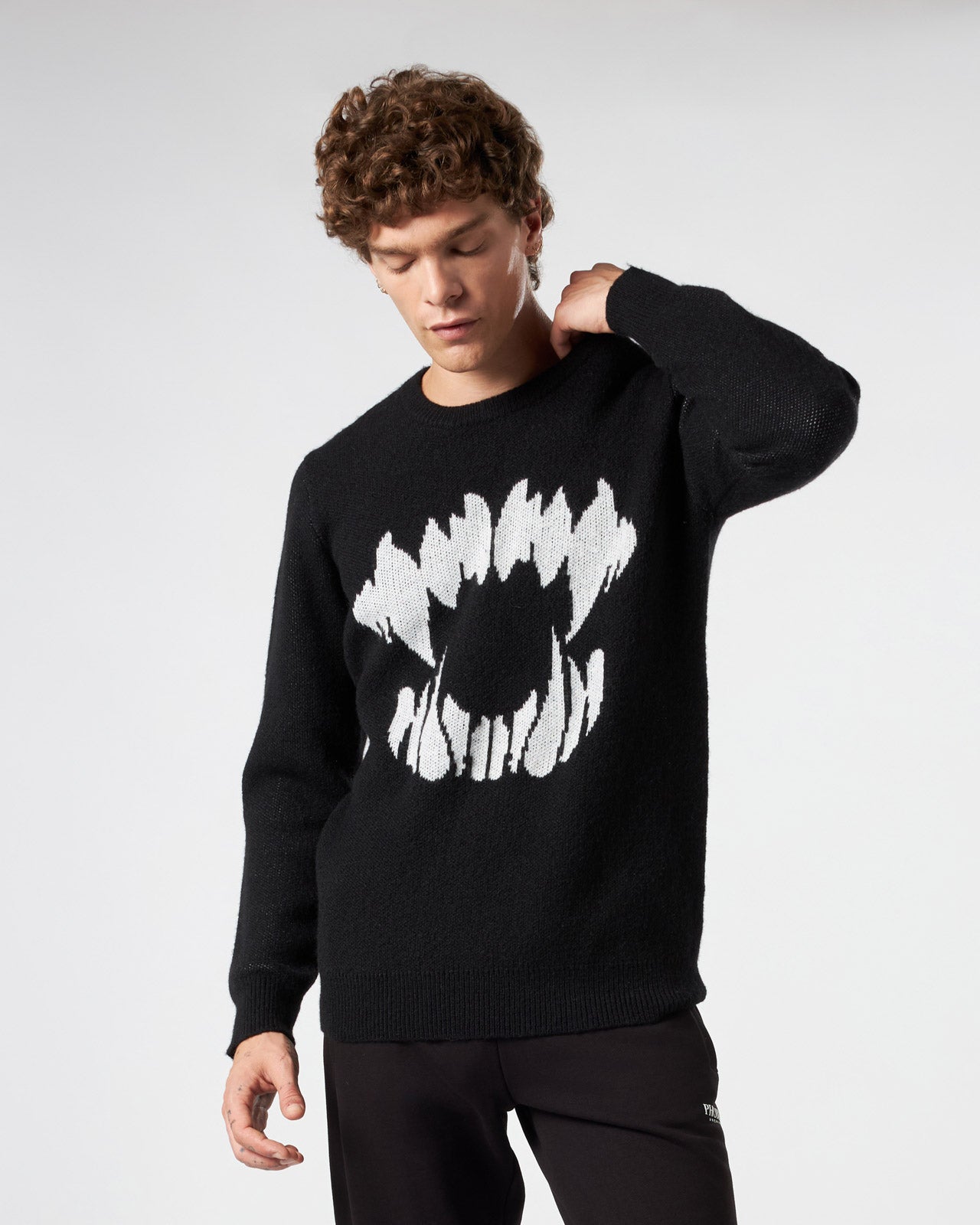 BLACK JUMPER WITH WHITE DEMON BITE PRINT