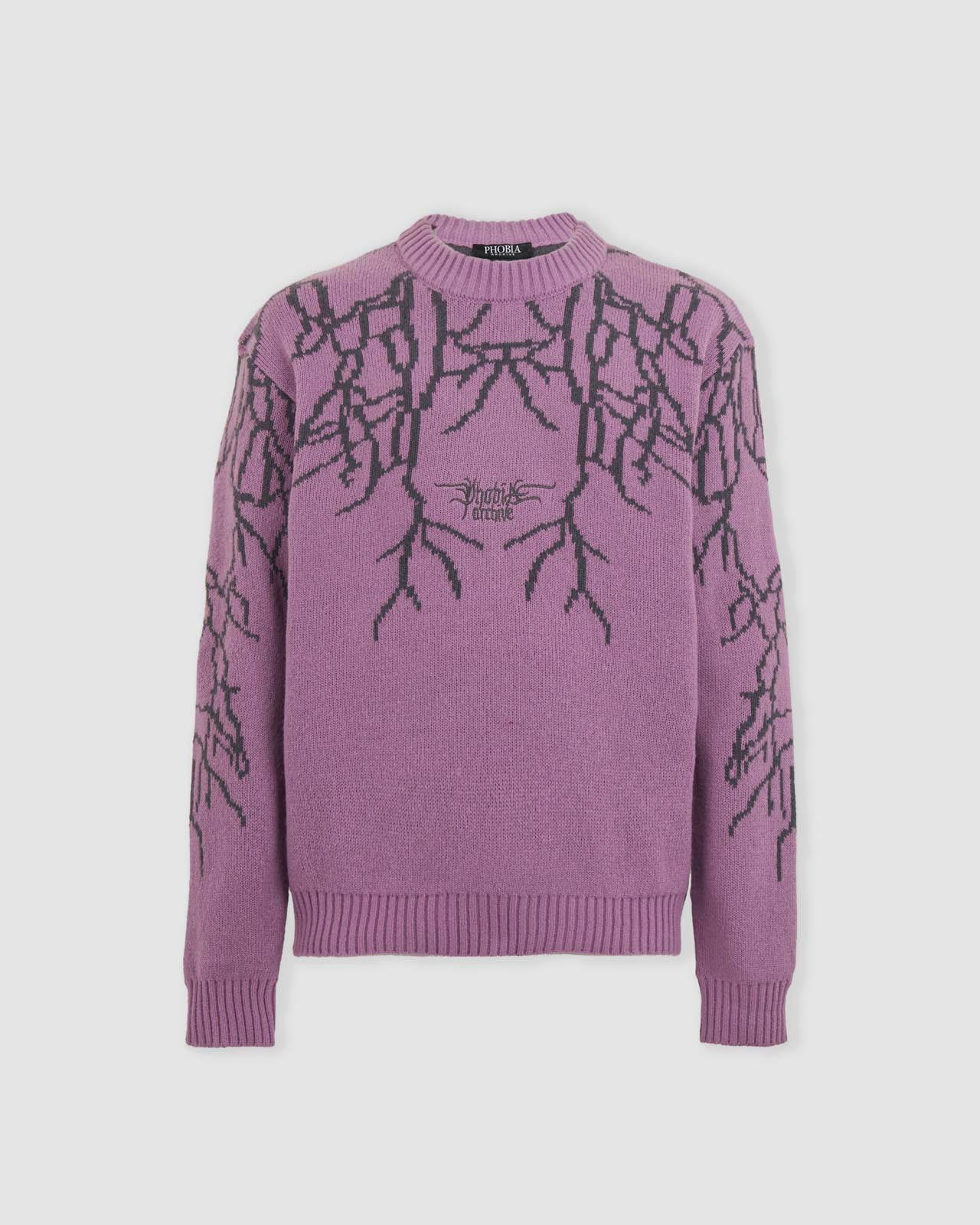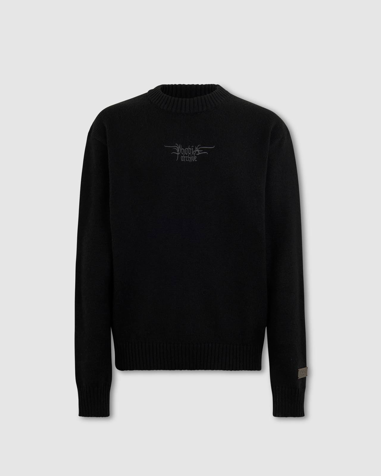 BLACK SWEATER WITH GREY BARBED WIRE JACQUARD