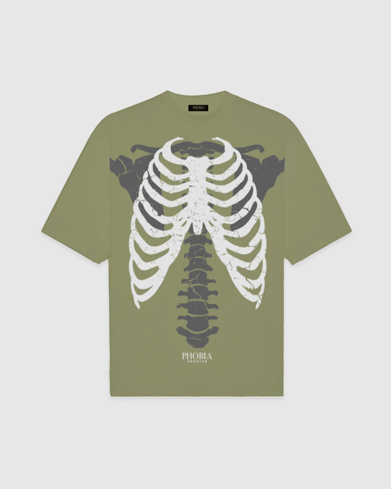 T-SHIRT VERDE CON STAMPA SCHELETRO GRIGIO