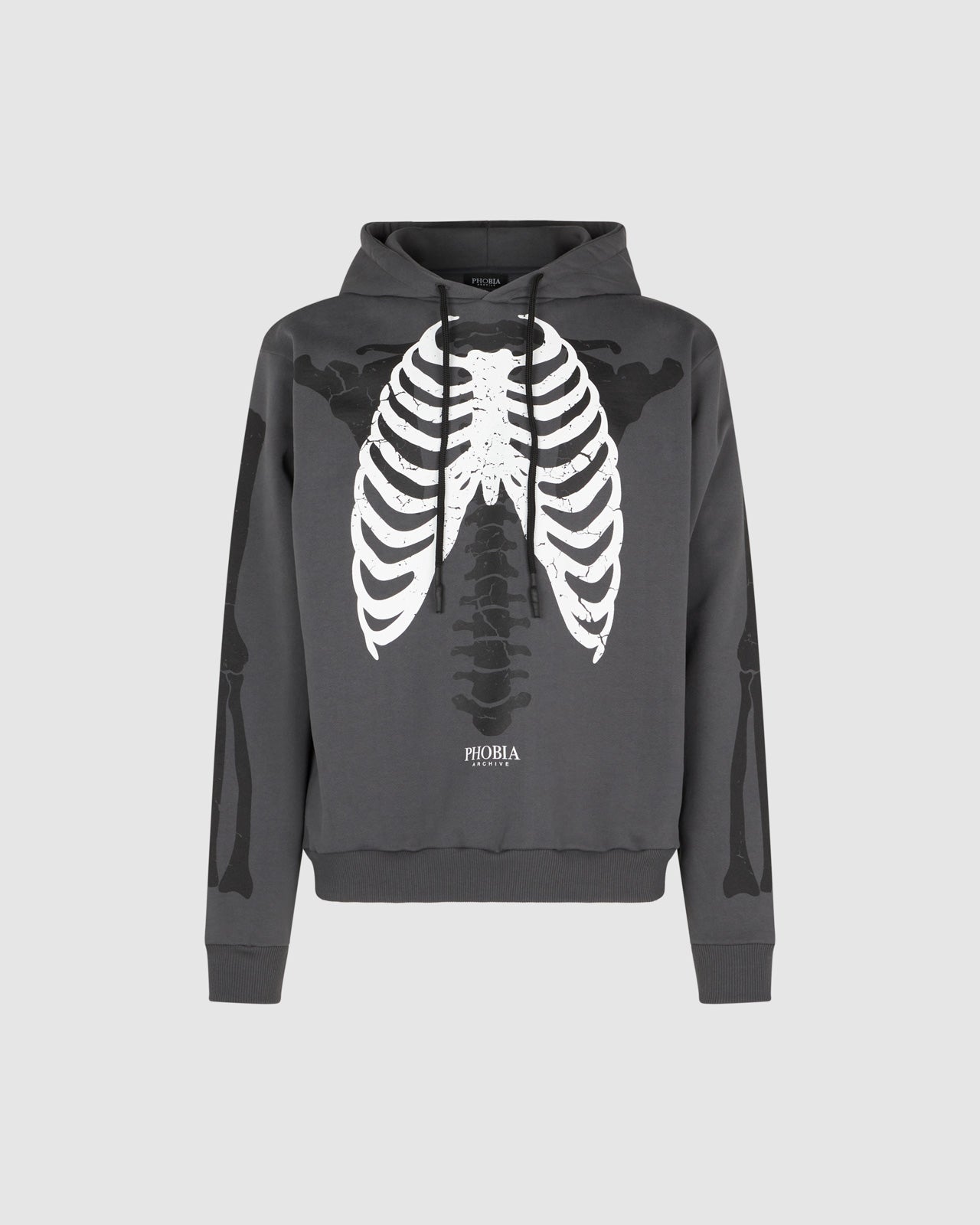 FELPA GRIGIA CON STAMPA SCHELETRO BIANCO