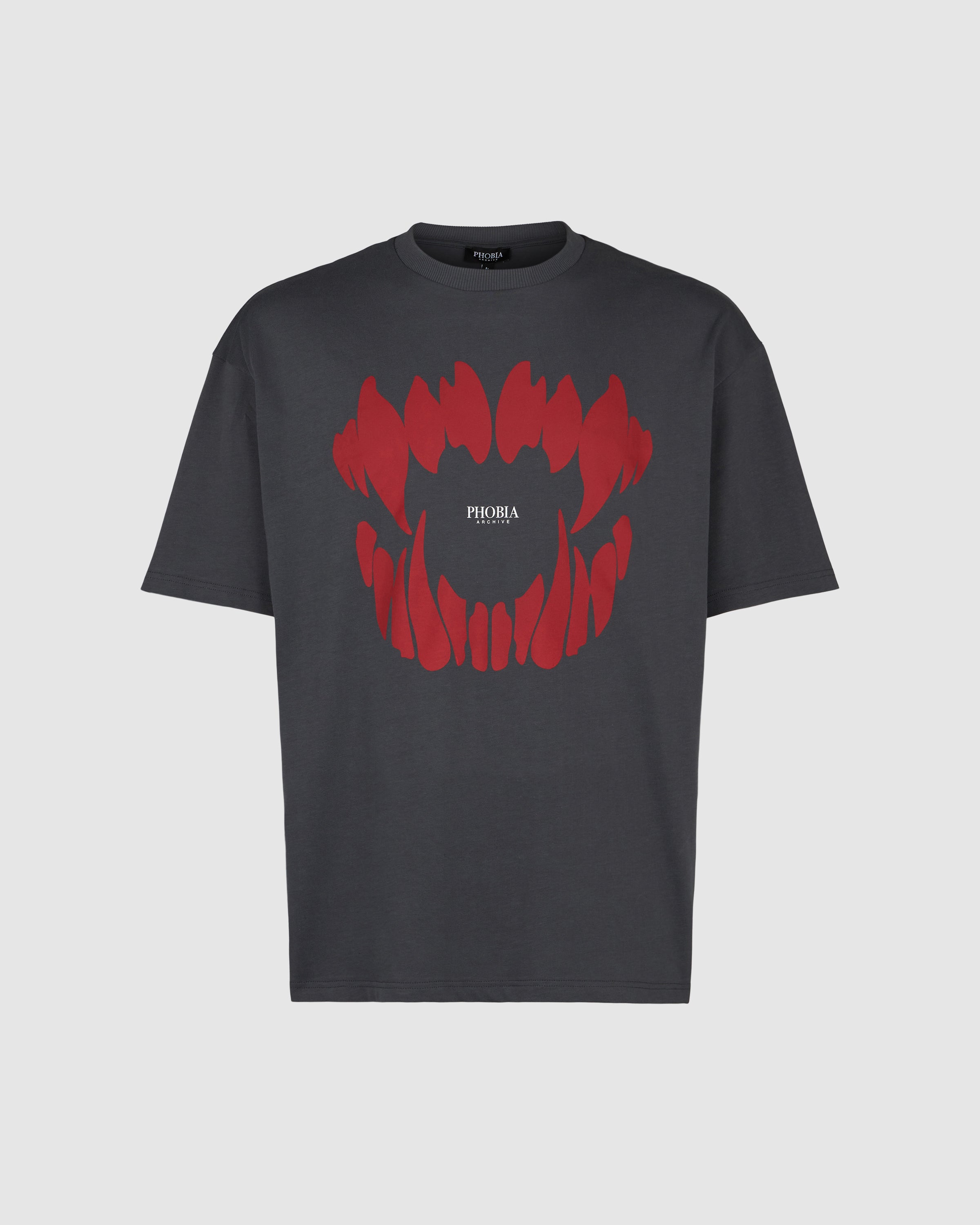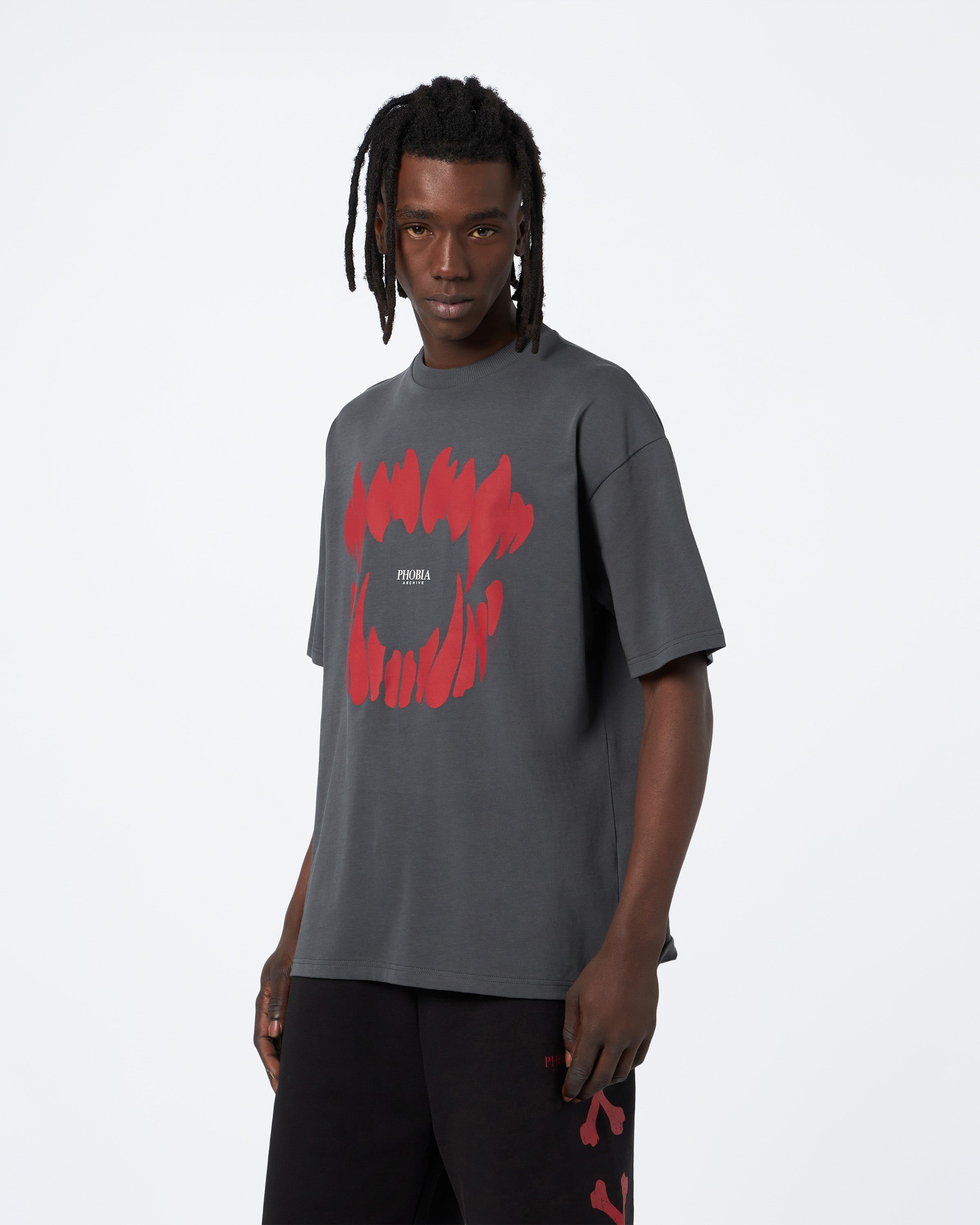 T-SHIRT GRIGIA CON STAMPA BOCCA ROSSA