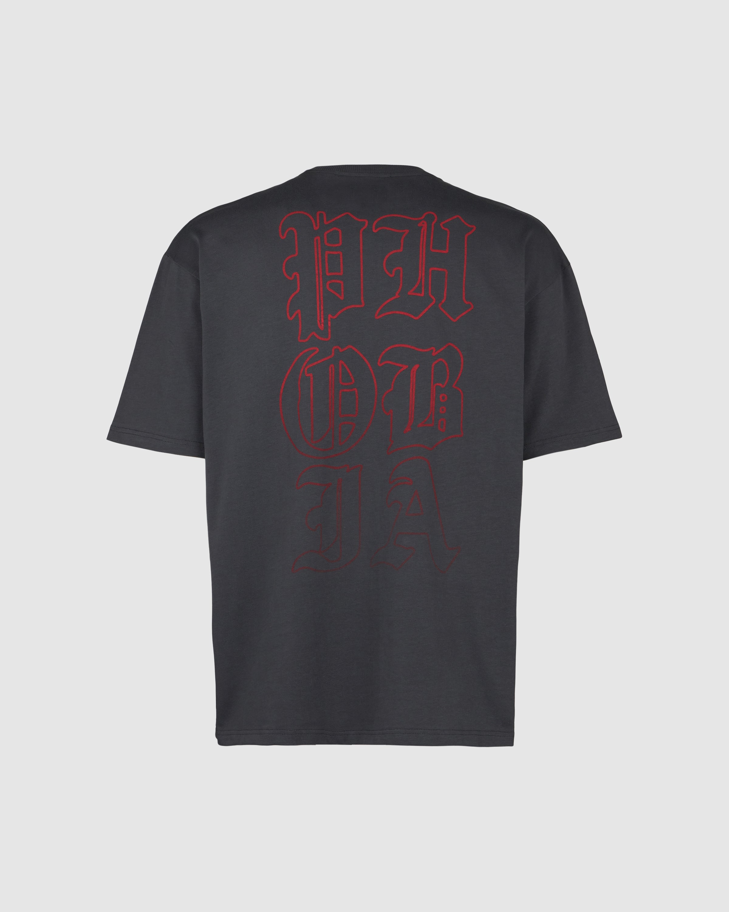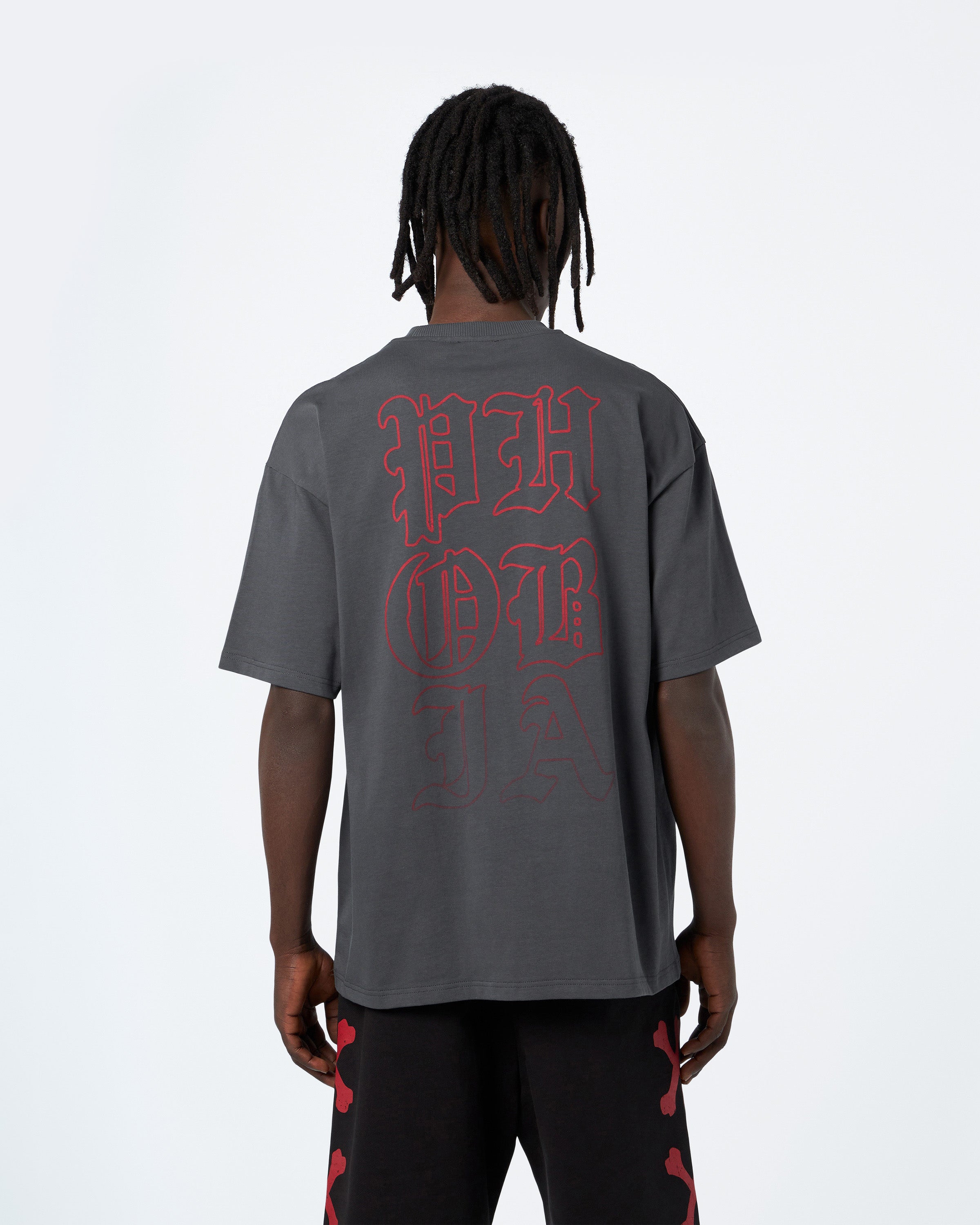 GREY T-SHIRT WITH FRONT BLACK RIB HEART PRINT