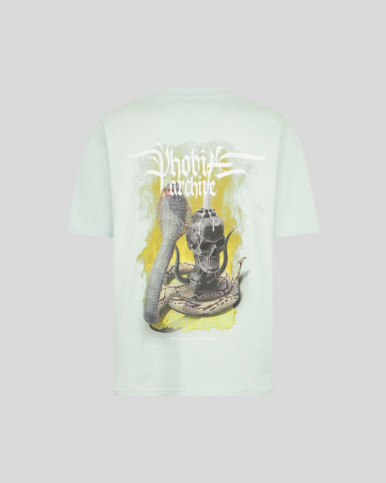 T-SHIRT AZZURRA CON GRAFICA FIERY COBRA GIALLA