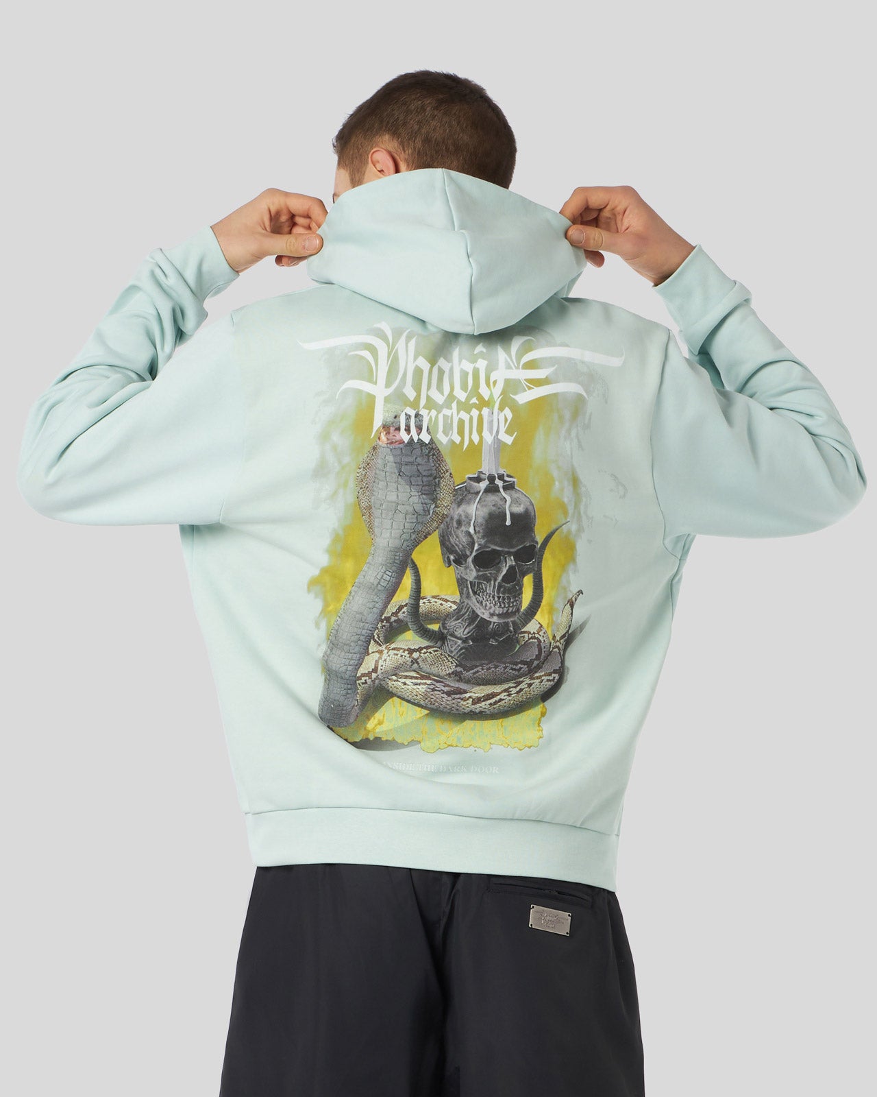 FELPA AZZURRA CON GRAFICA FIERY COBRA GIALLA