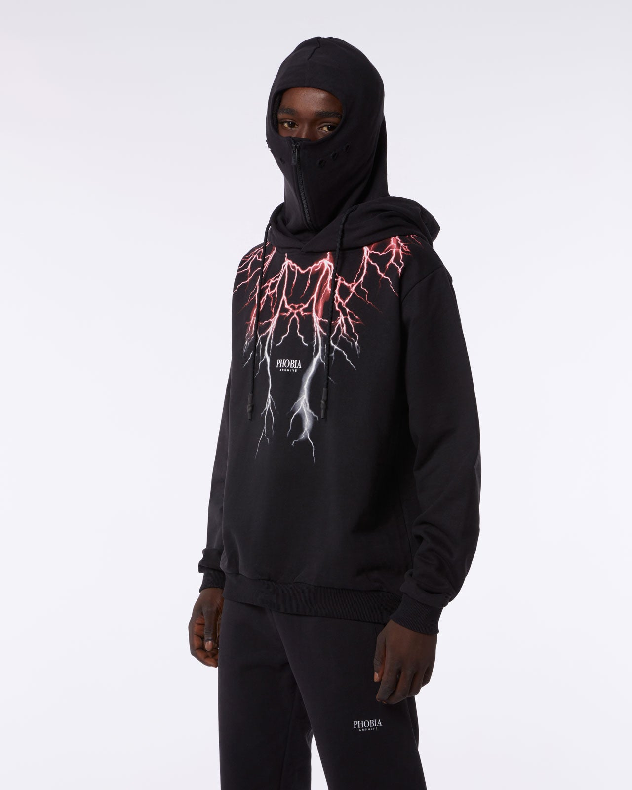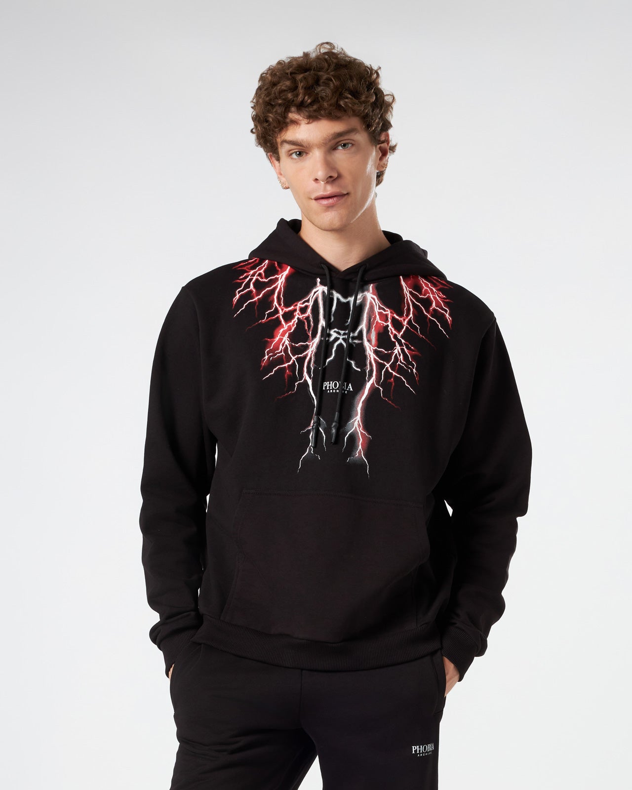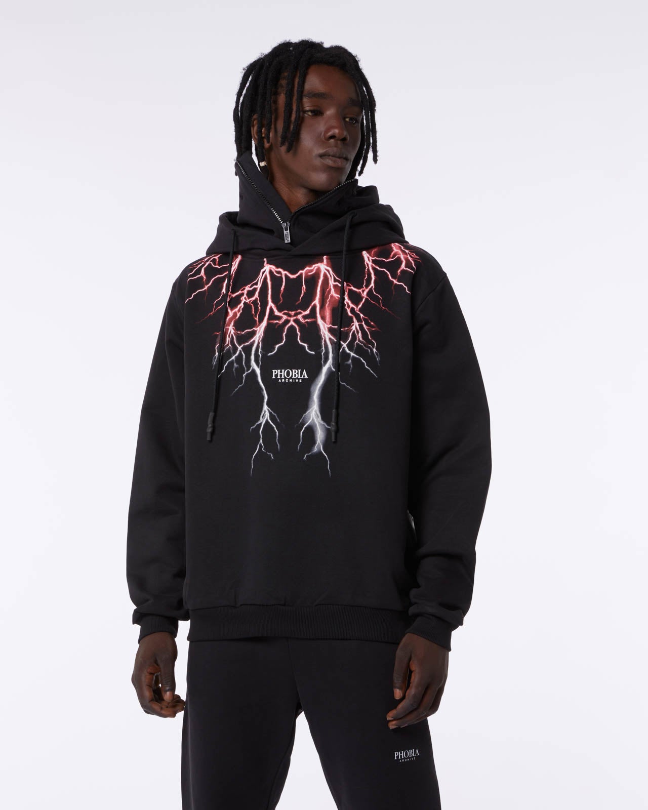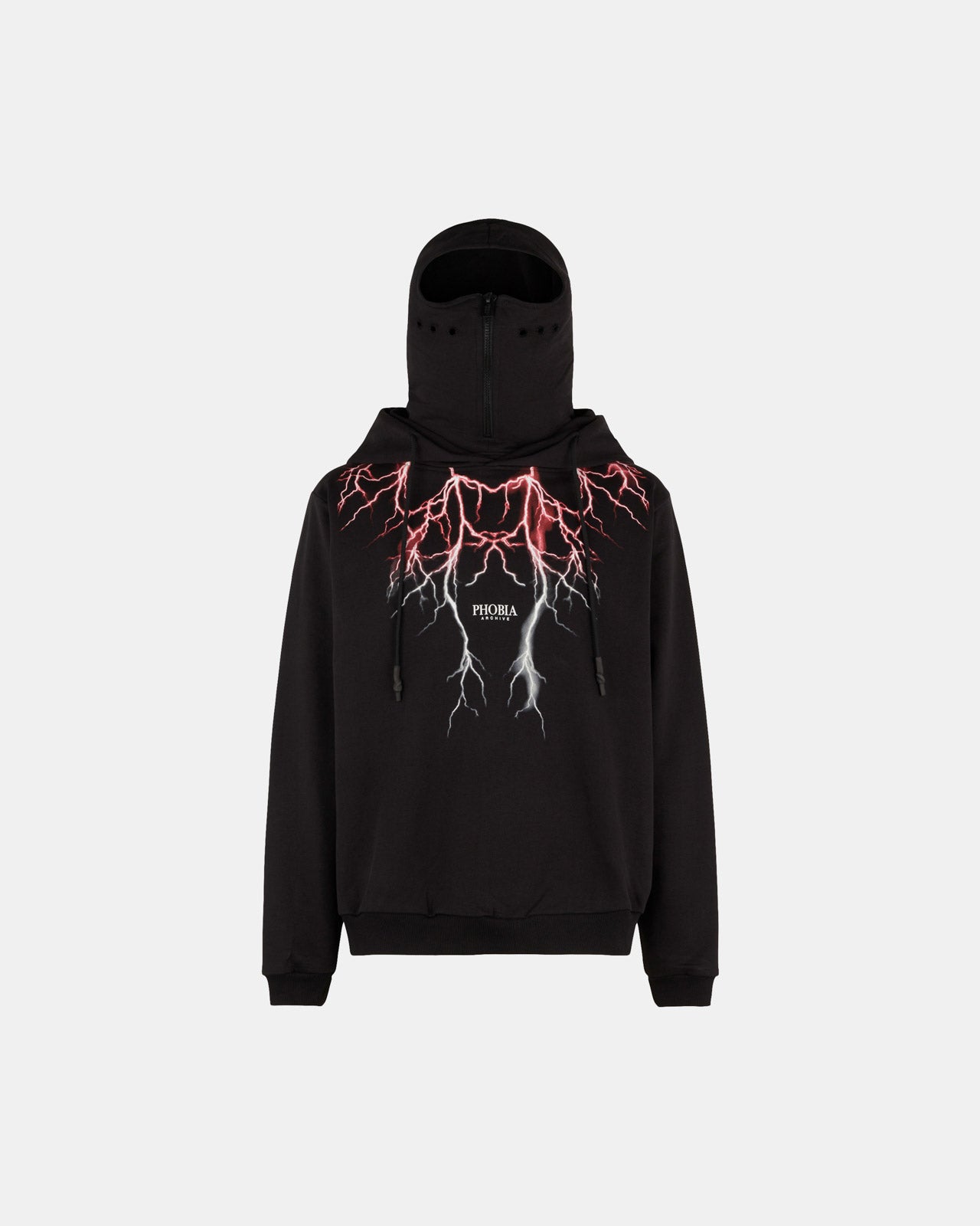 FELPA DOPPIO CAPPUCCIO CON FULMINI ROSSO-VERDI