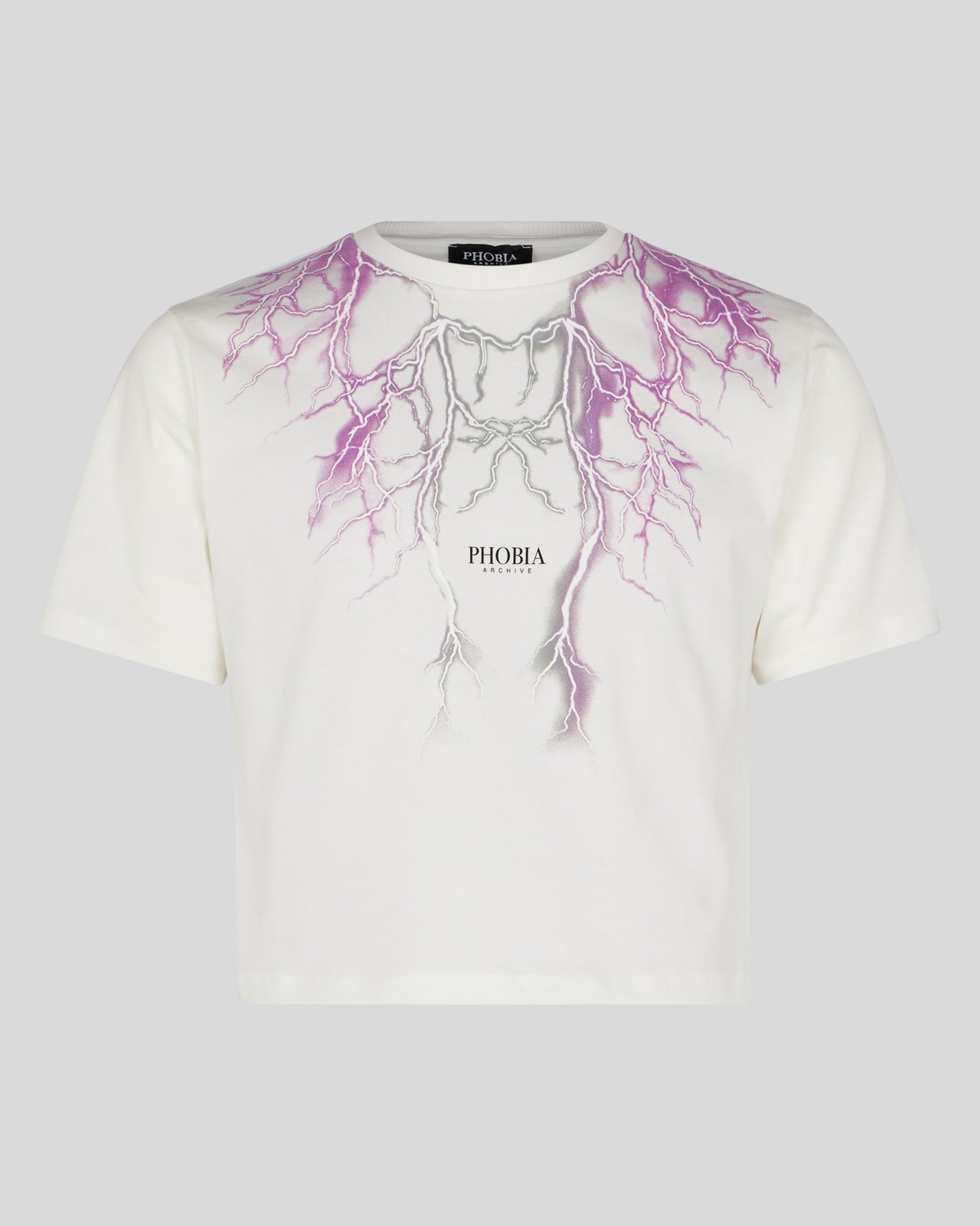 T-SHIRT NERA CORTA CON FULMINI VIOLA E GRIGI