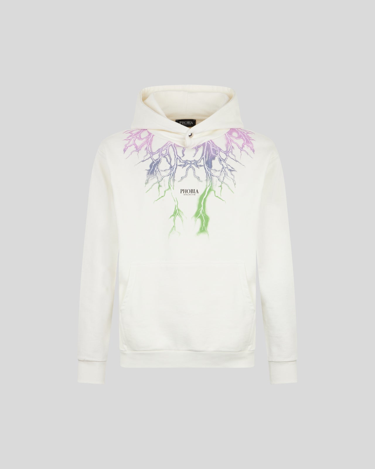 WHITE HOODIE WITH FRONT AND BACK WHITE LIGHTNING