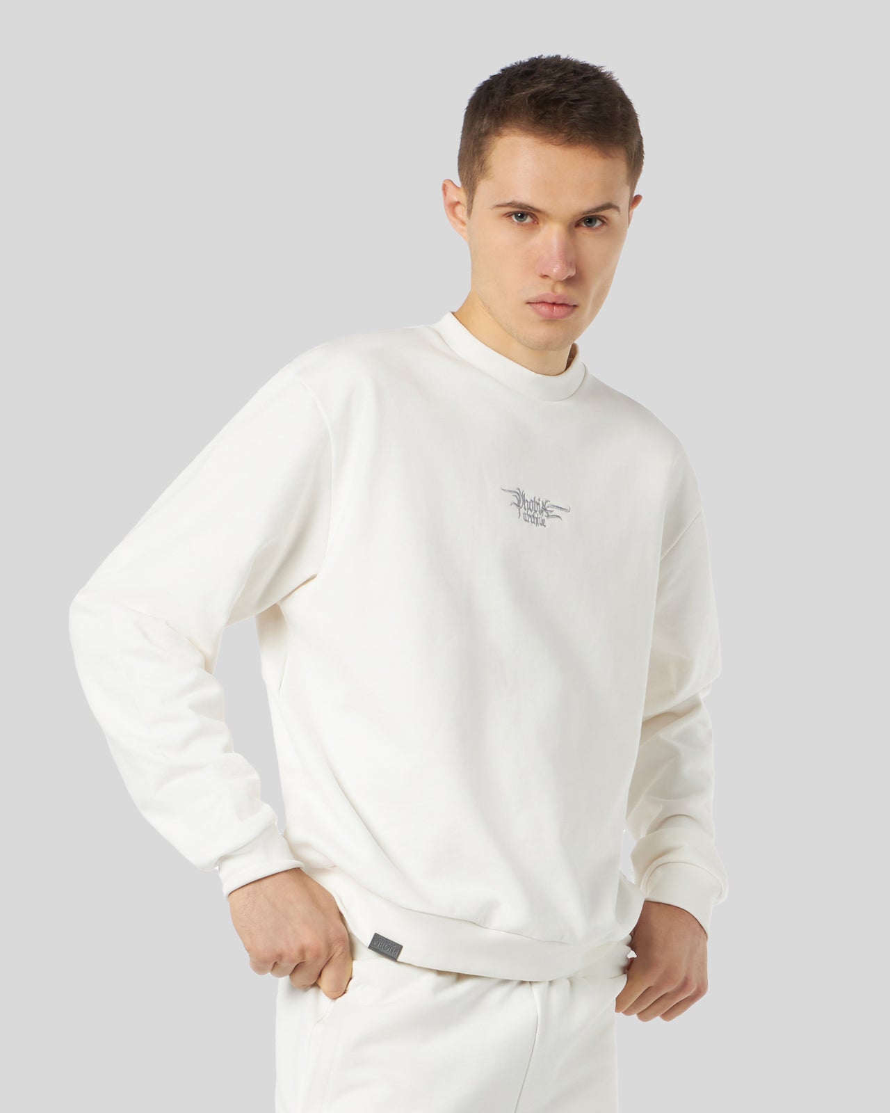 FELPA GIROCOLLO BIANCA CON LOGO GOTICO ED ETICHETTA IN METALLO
