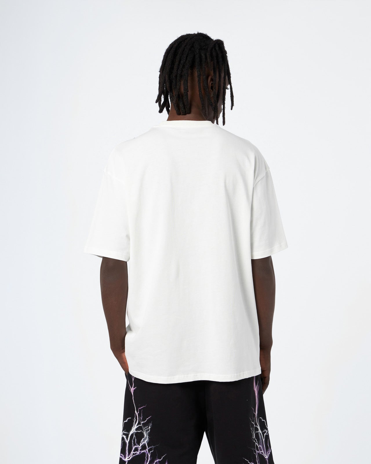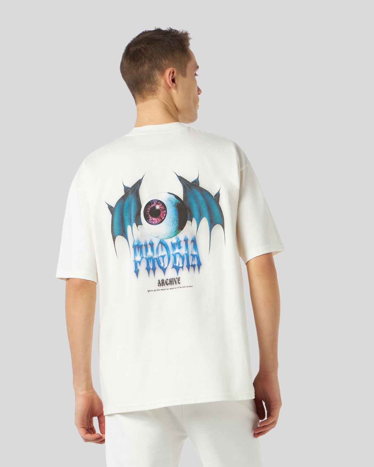 WHITE T-SHIRT WITH FRONT LOGO PRINT AND BACK LIGHTNING EYE PRINT