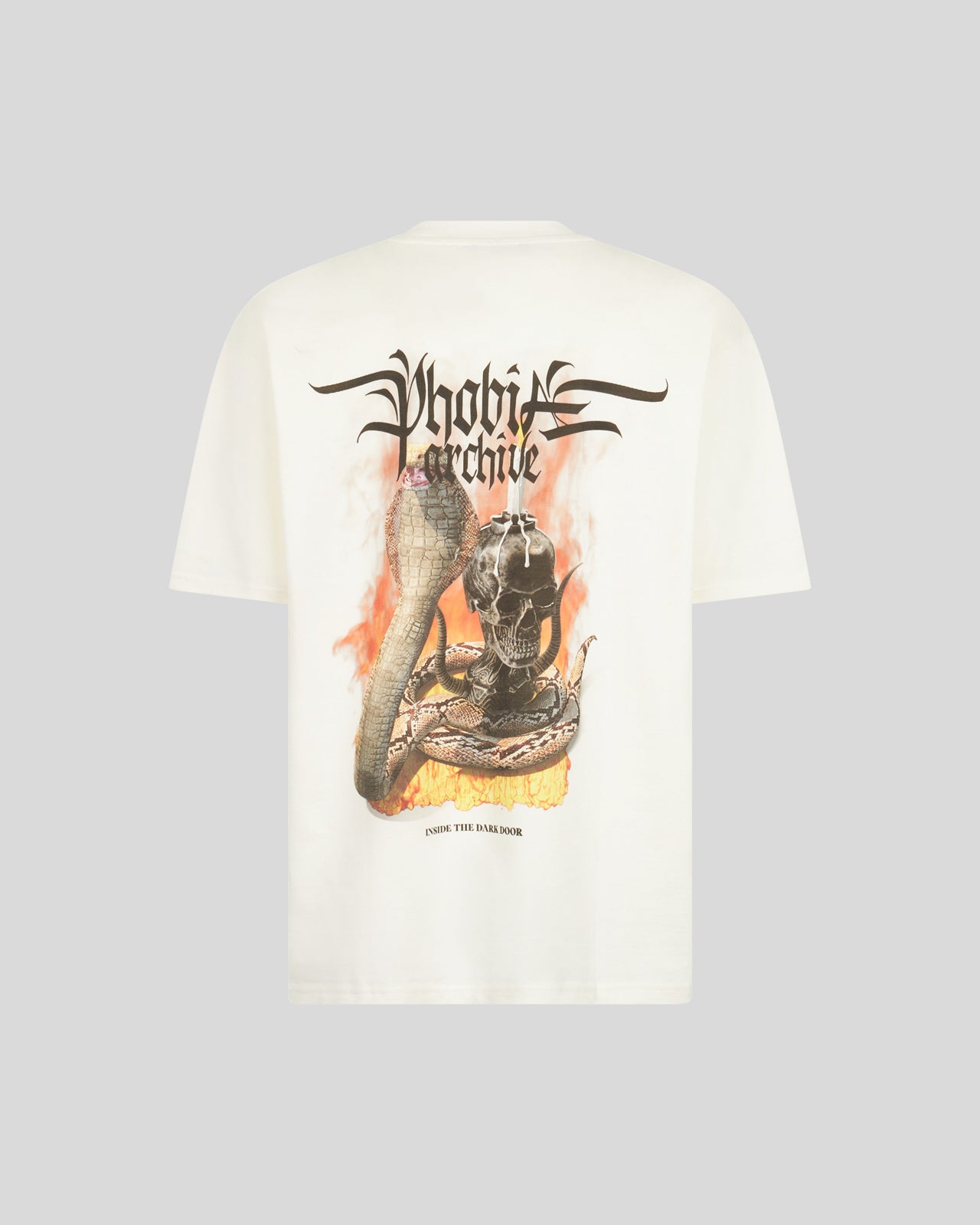 T-SHIRT BIANCA CON GRAFICA FIERY COBRA ARANCIONE