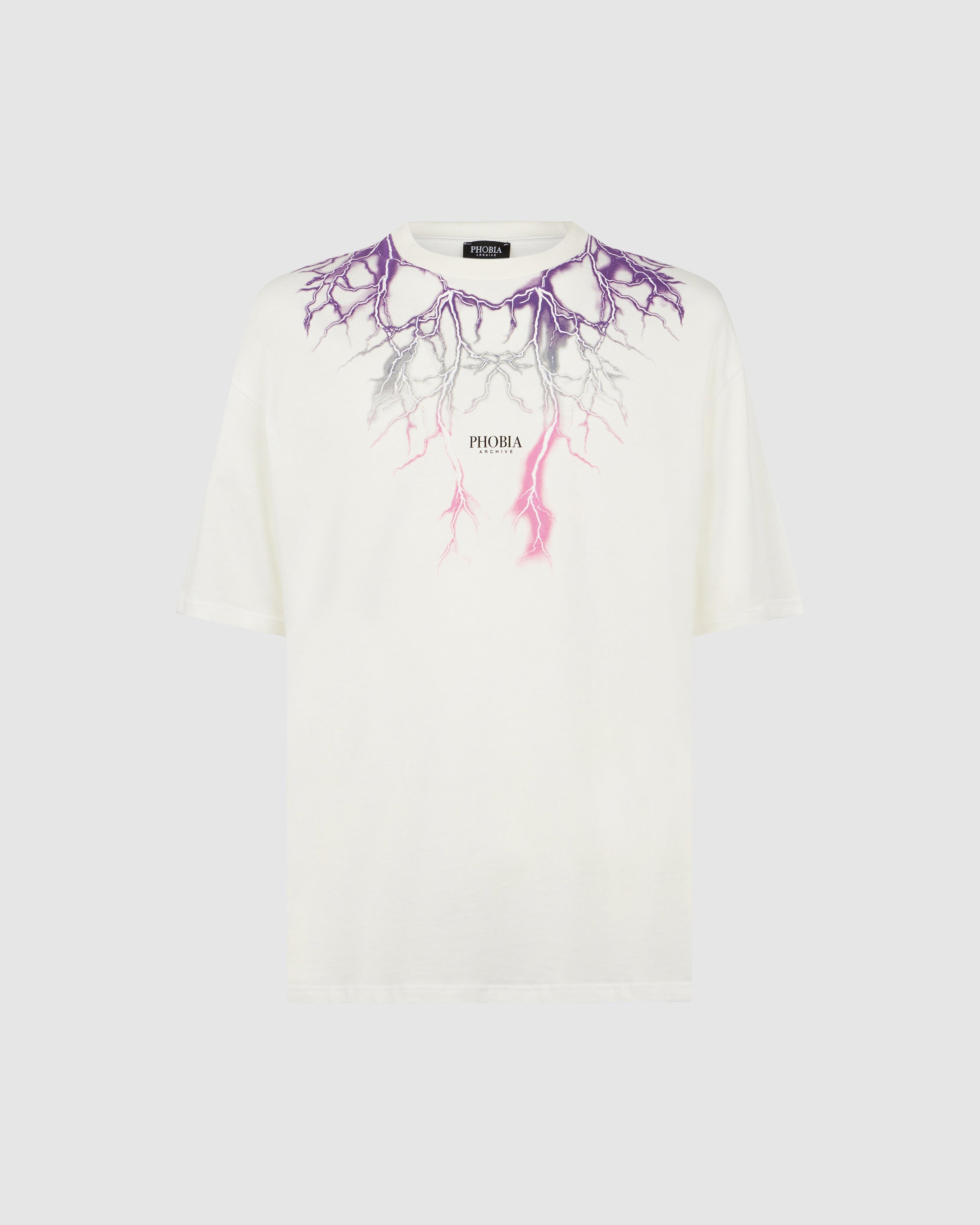 T-SHIRT BIANCA CON STAMPA STARRY LIGHTNING GIALLA E VIOLA