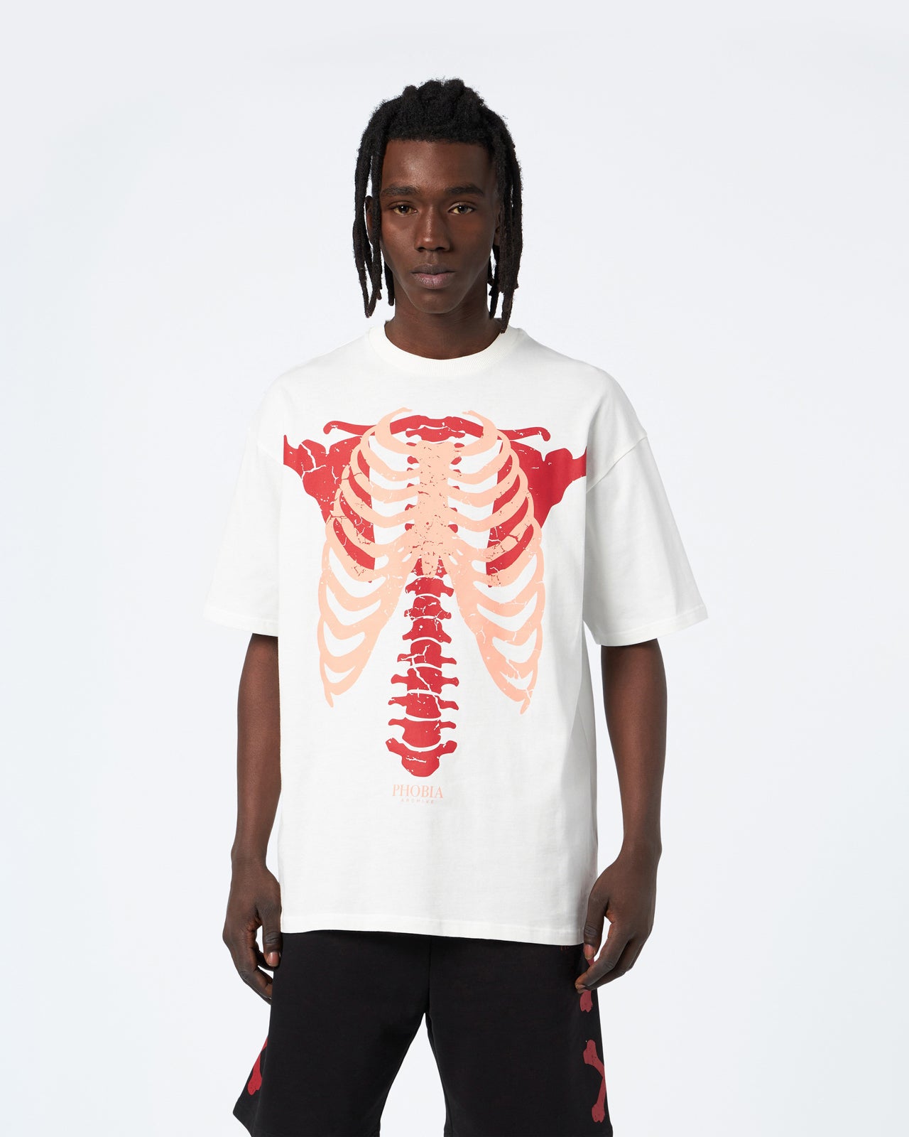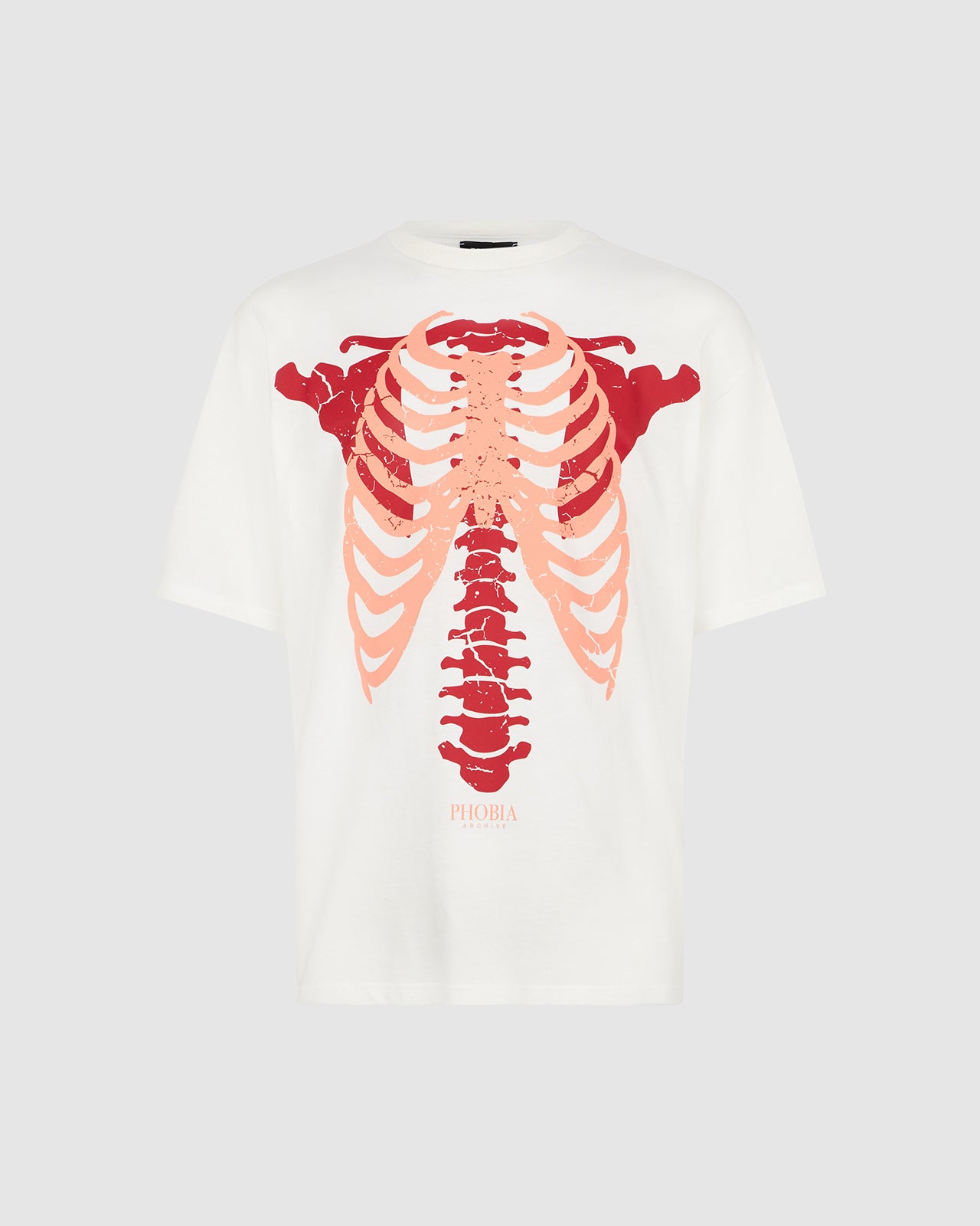 T-SHIRT BIANCA CON STAMPA SKELETON ROSSA