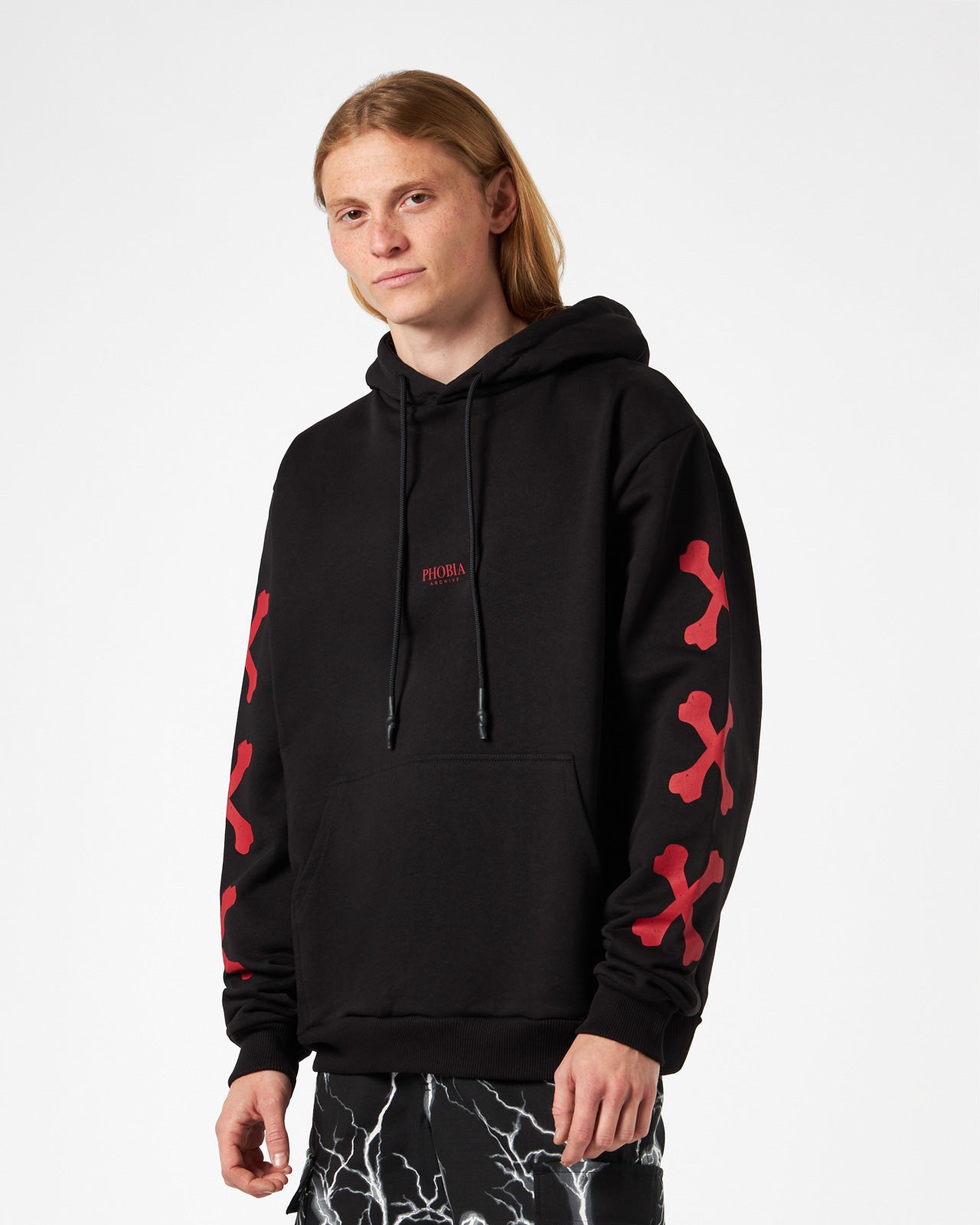 FELPA NERA CON OSSA DELLA CROCE ROSSA