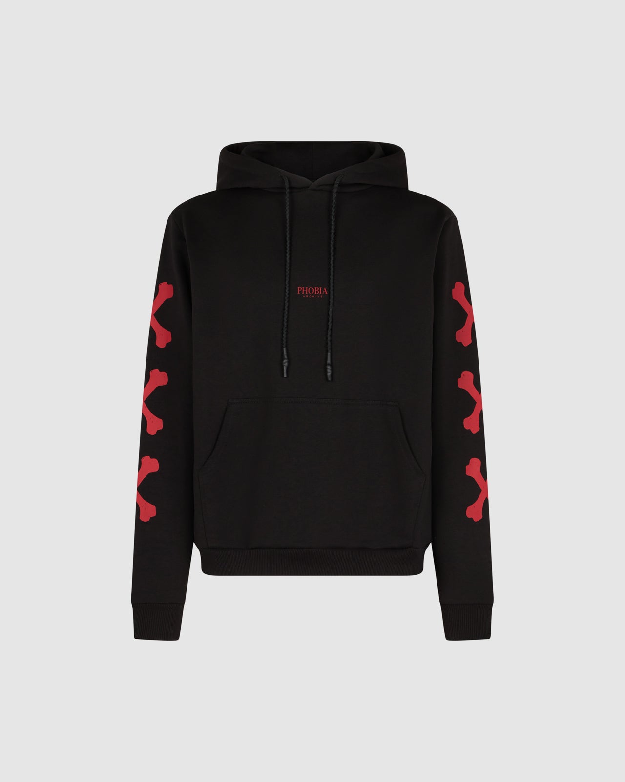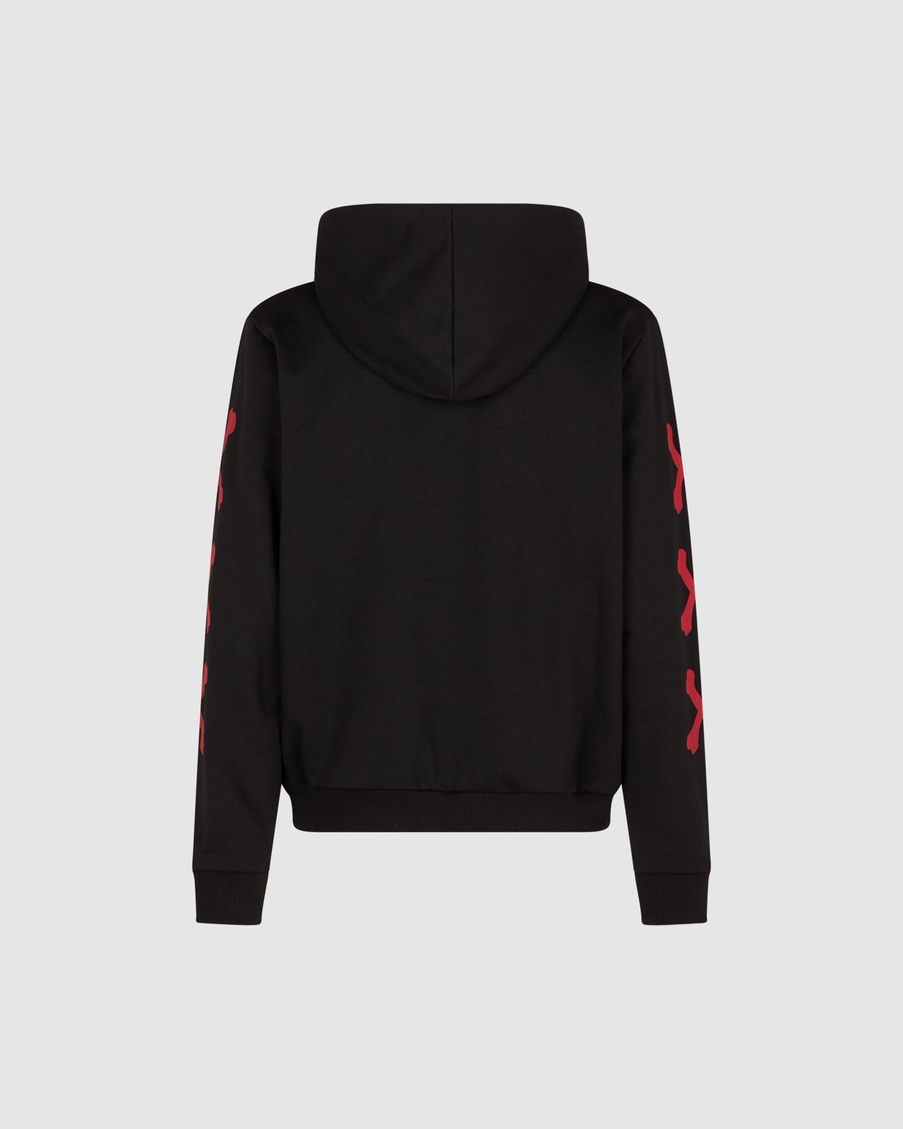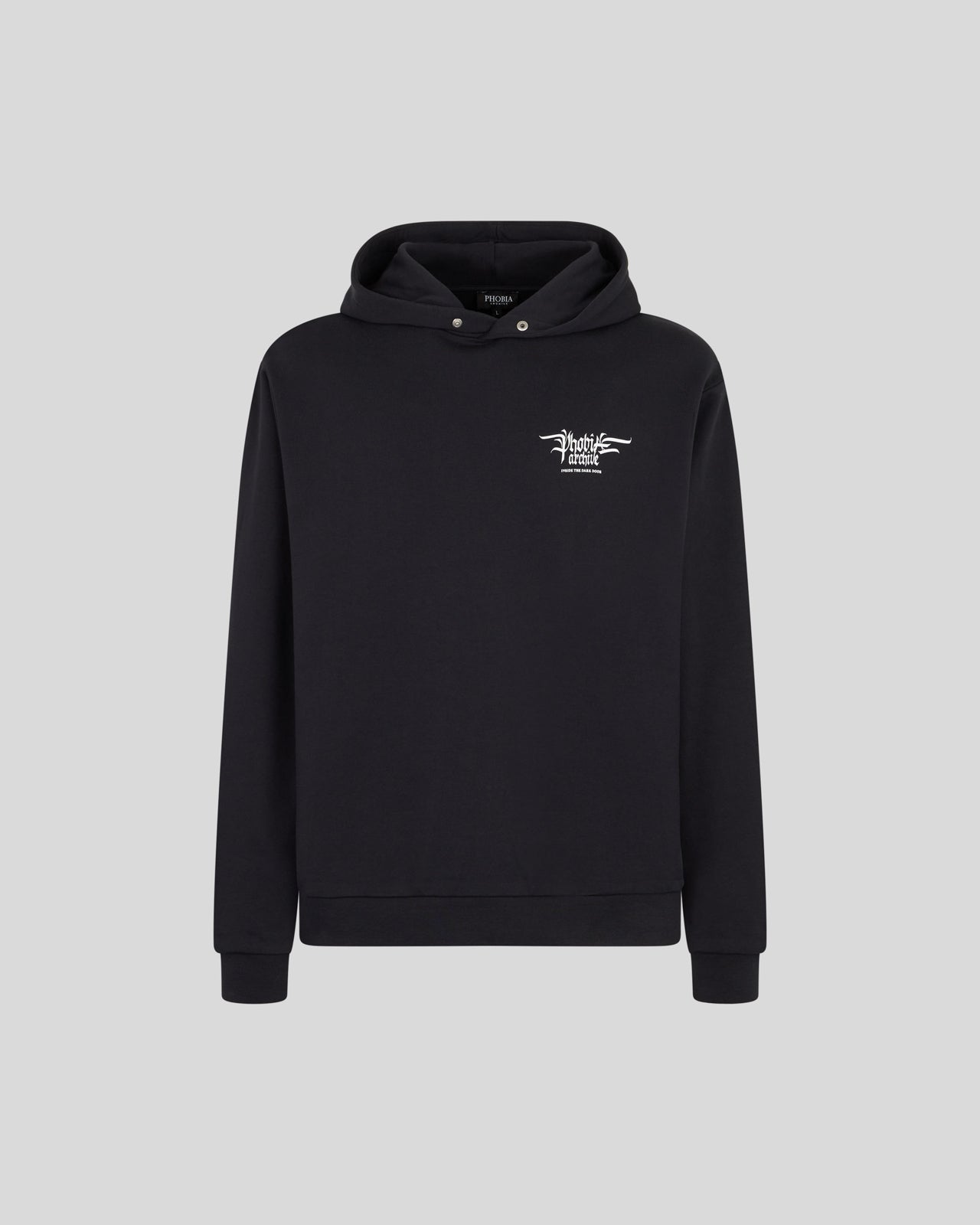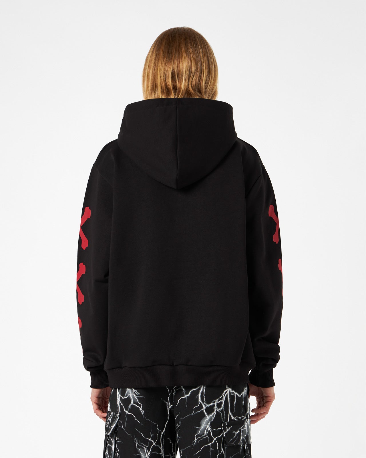 BLACK HOODIE WITH FRONT LOGO PRINT AND BACK SKULL PRINT