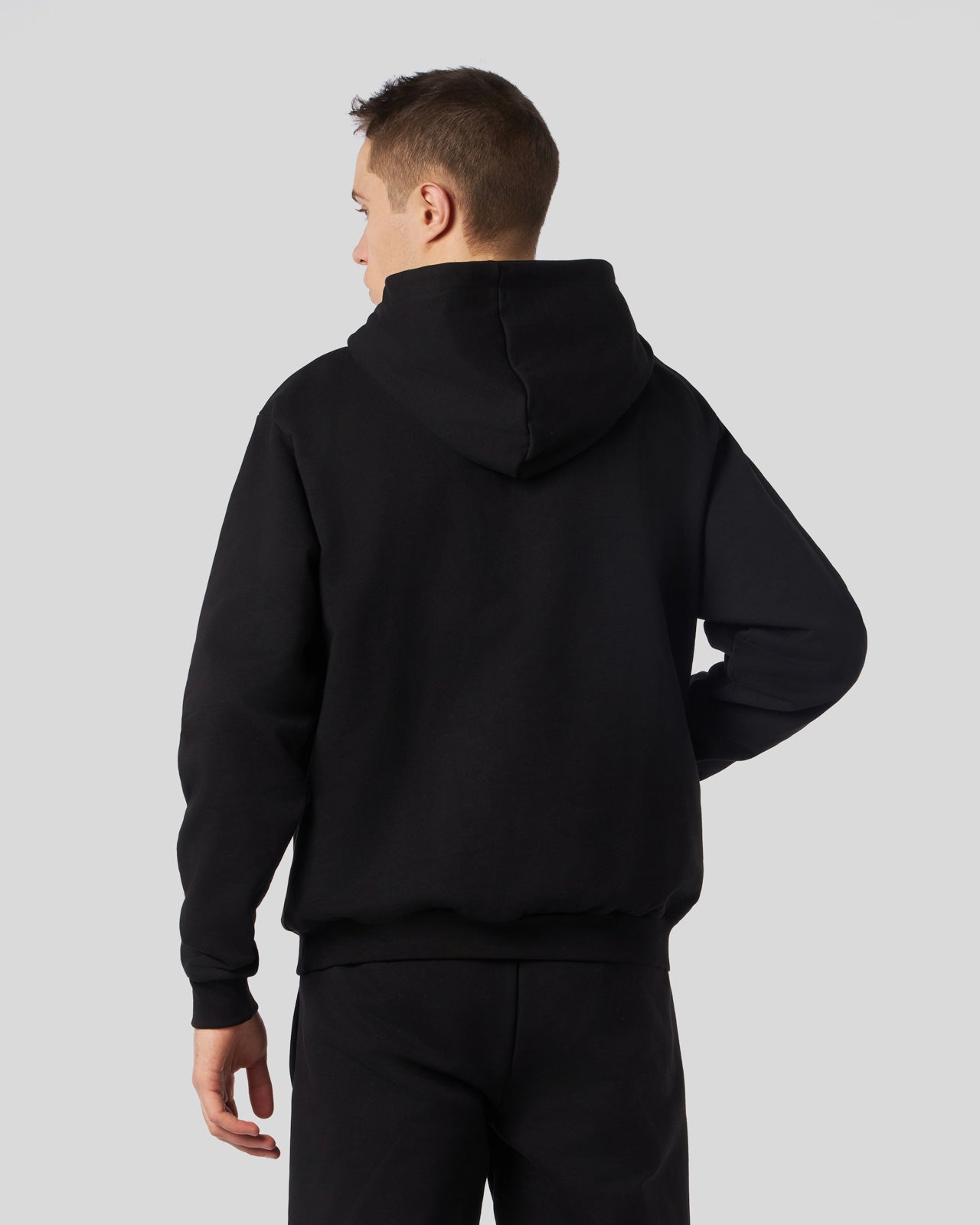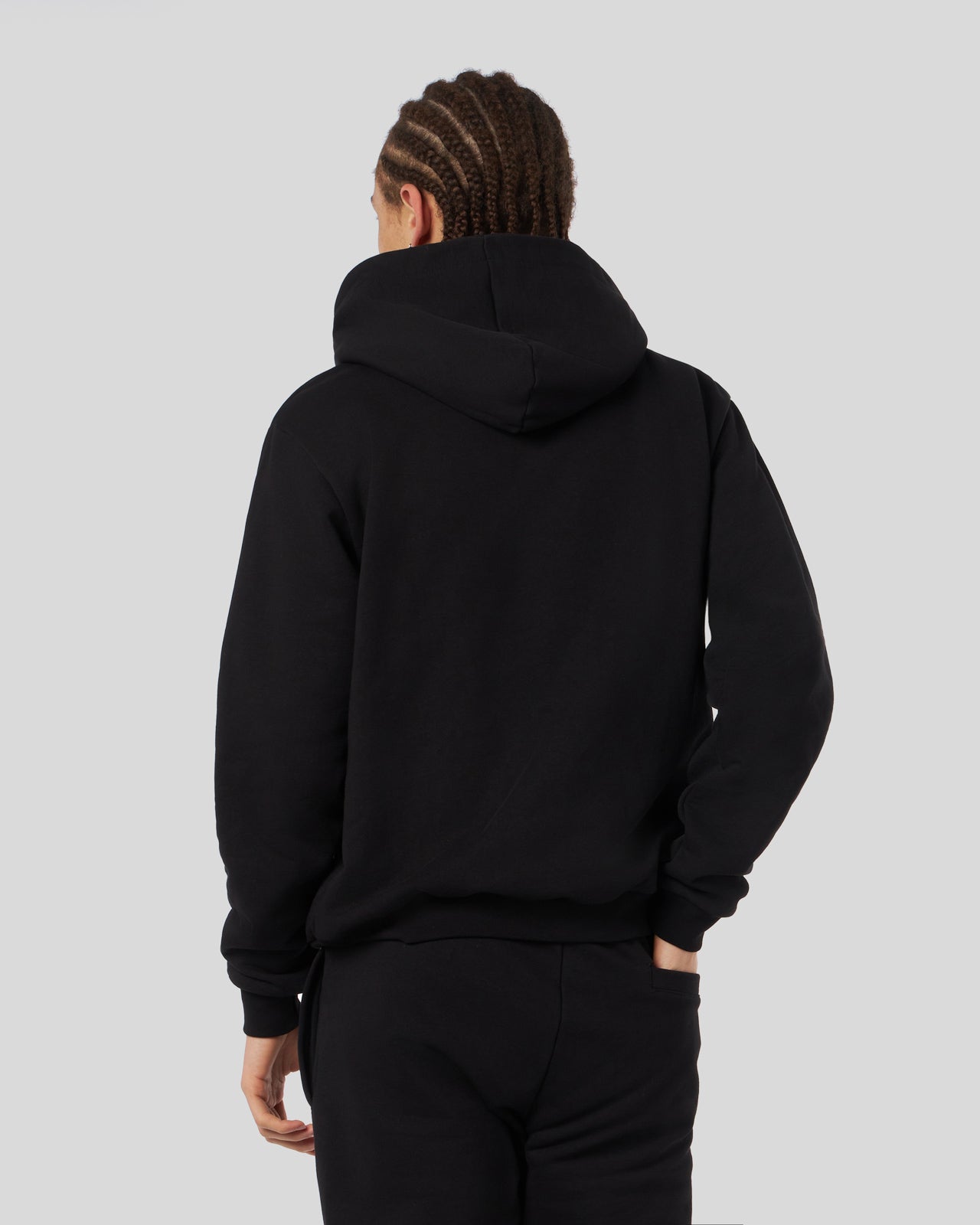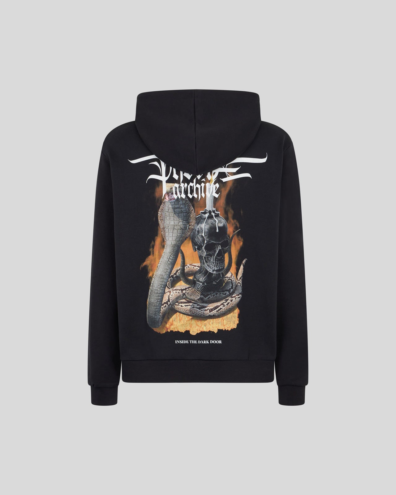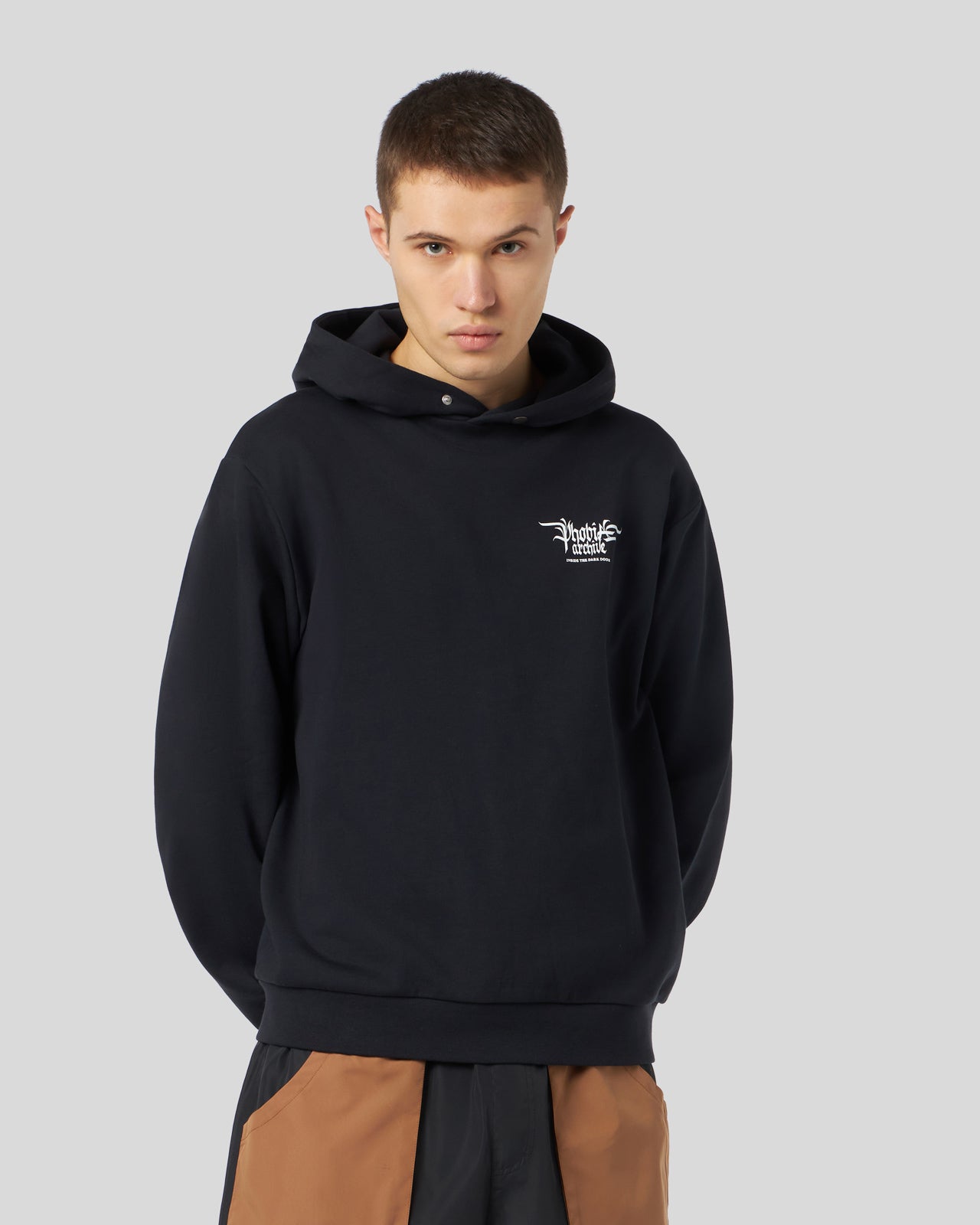 BLACK HOODIE WITH FRONT LOGO PRINT AND BACK SKULL PRINT