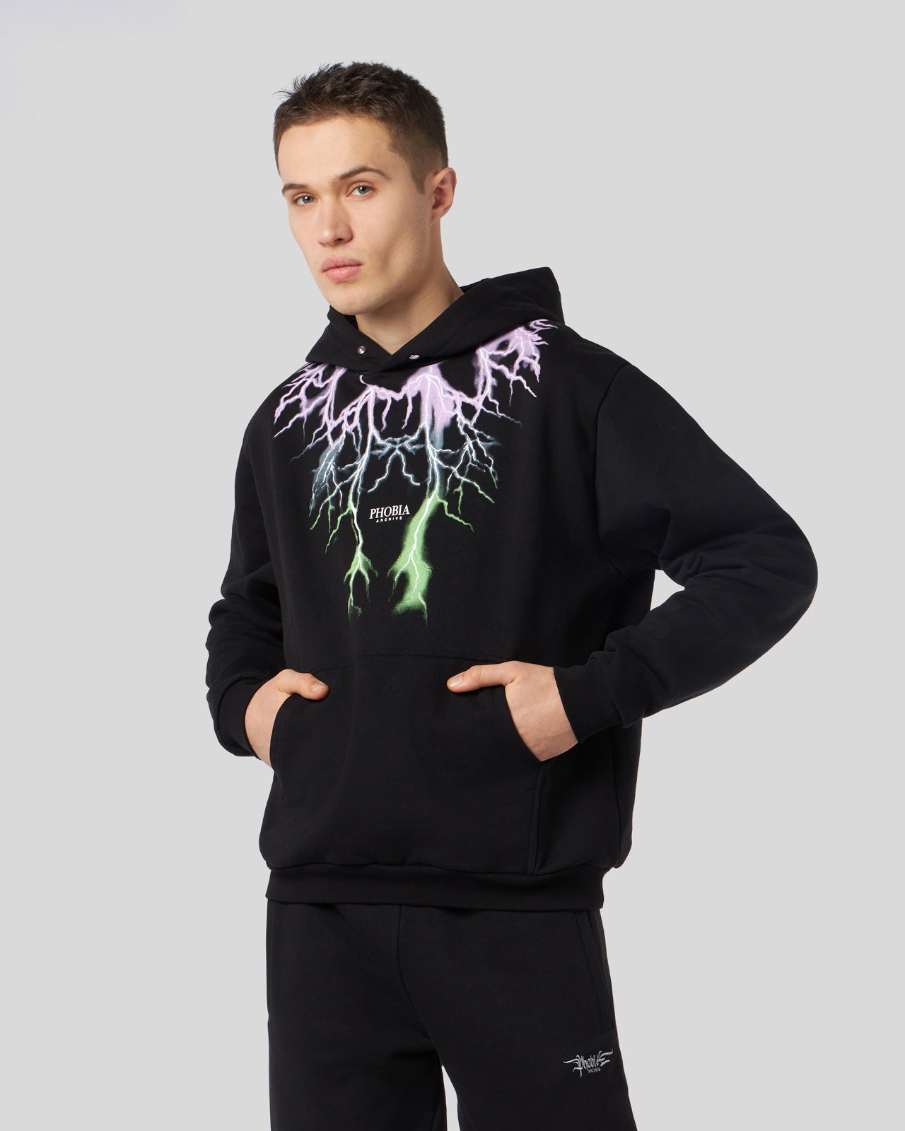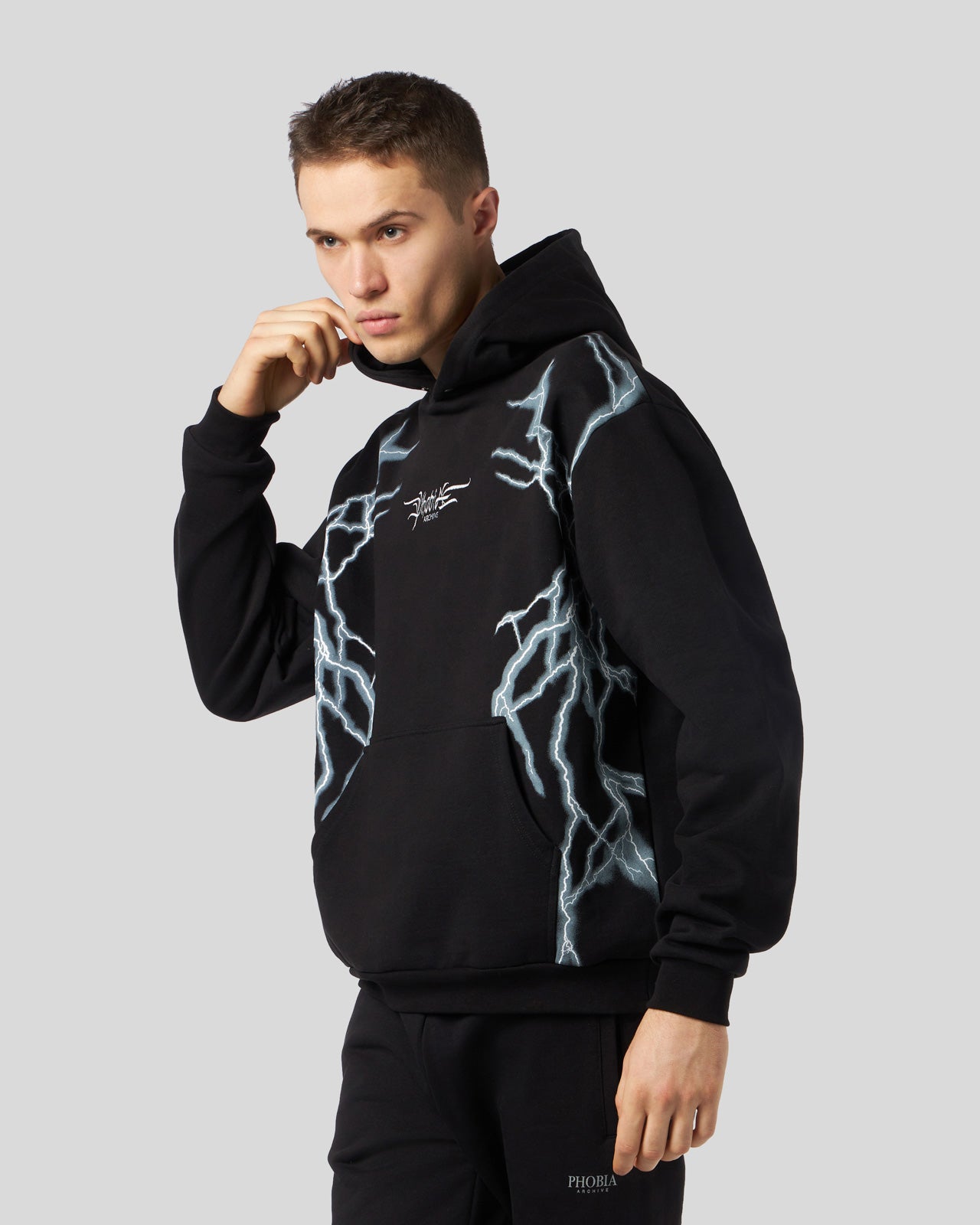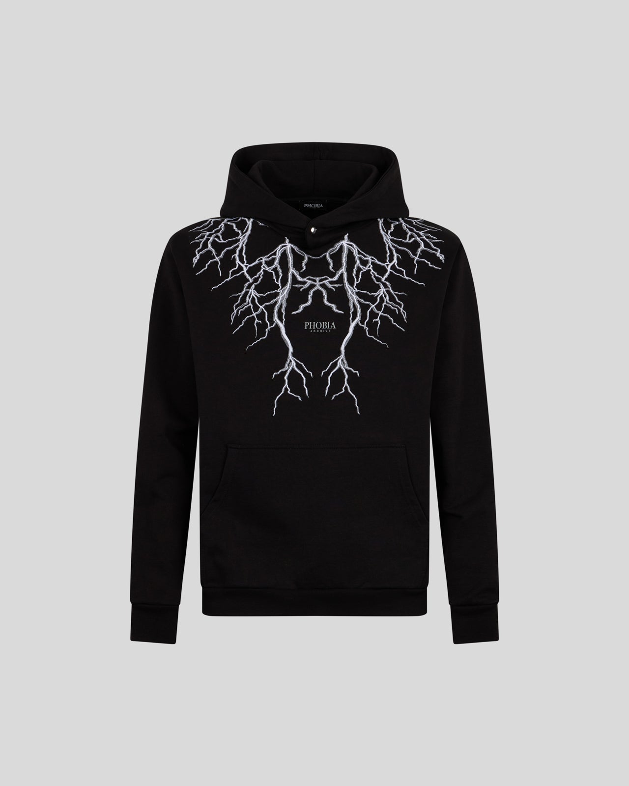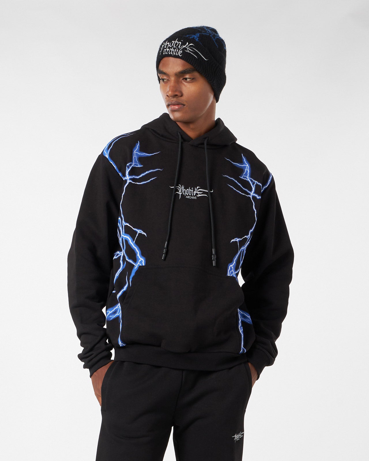BLACK HOODIE WITH FRONT AND BACK BLACK LIGHTNING