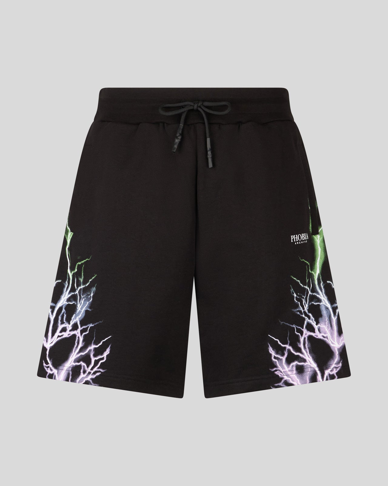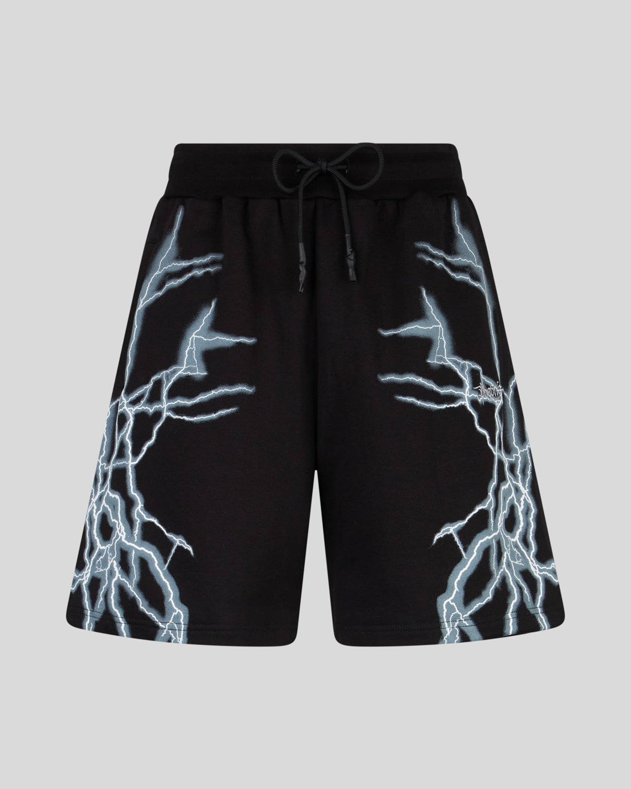 BLACK SHORTS WITH BLACK LIGHTNING PRINT AND LOGO PRINT