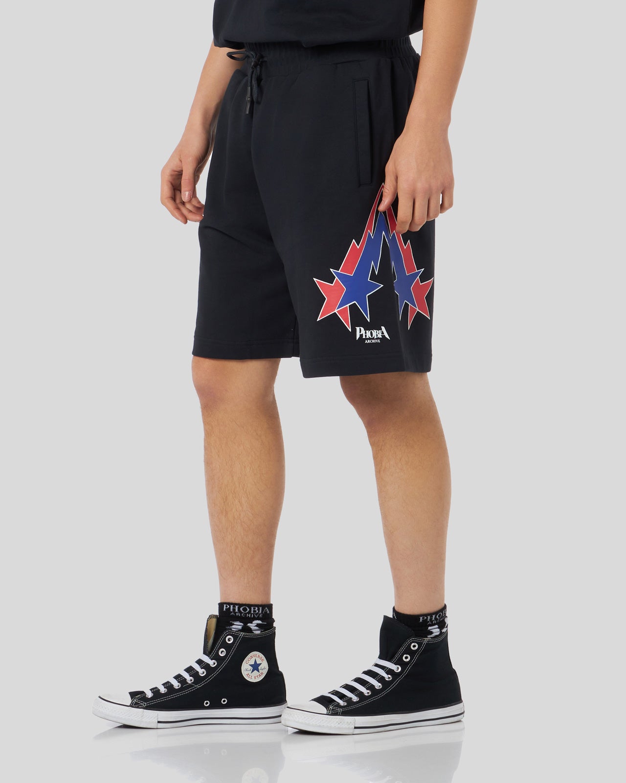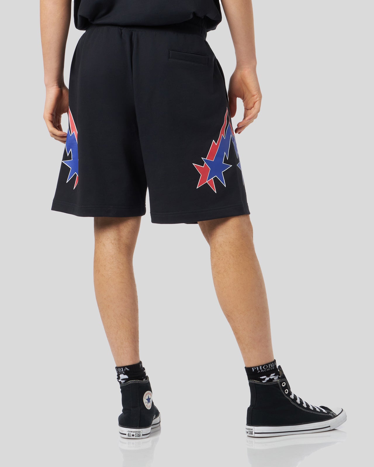 PANTALONCINO NERO CON GRAFICA STARRY LIGHTNING ROSSA E BLU