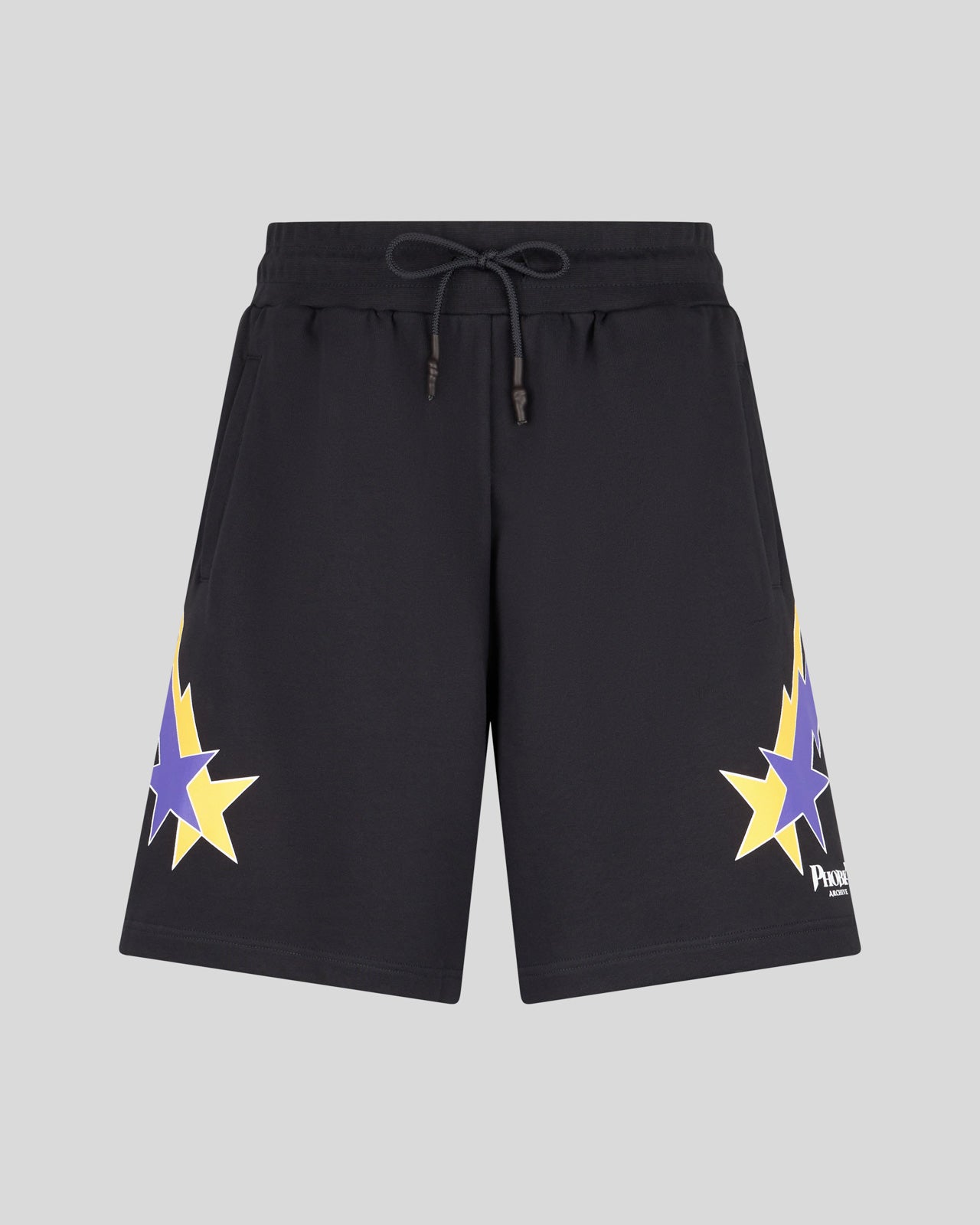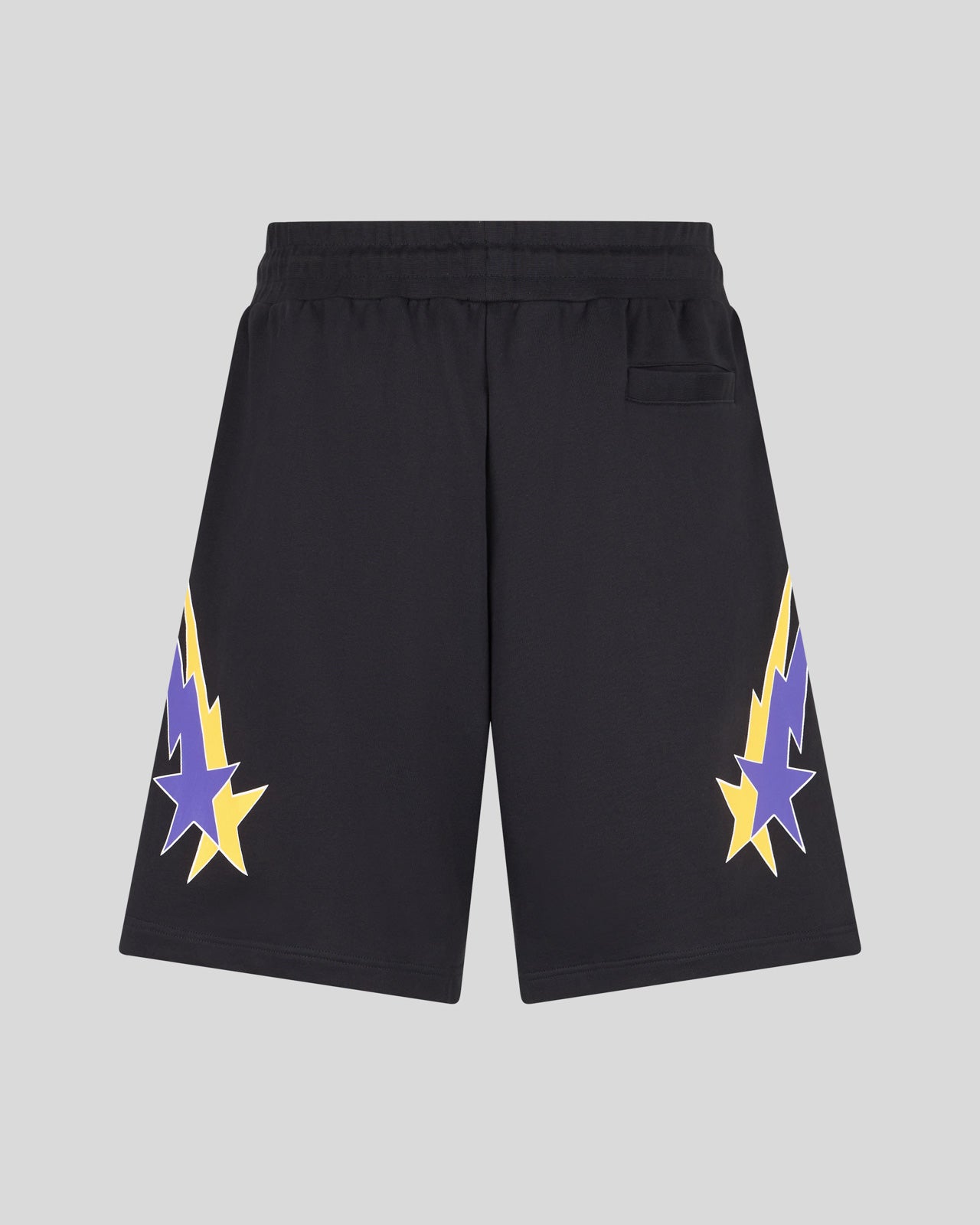 PANTALONCINO NERO CON GRAFICA STARRY LIGHTNING GIALLA E VIOLA