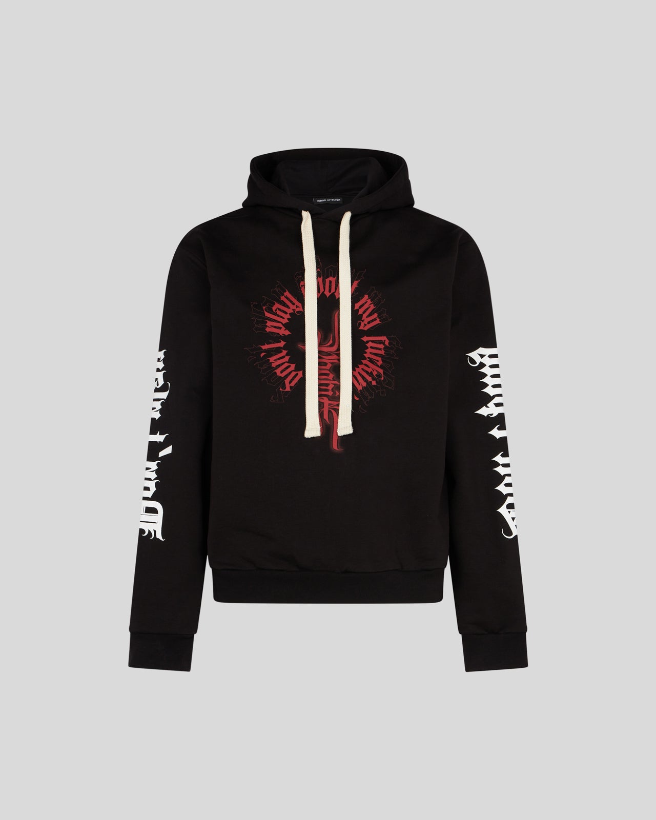 Felpa nera con grafica “Don’t play about my fucking Phobia”, ispirata a una delle fobie di Emis Killa.