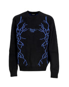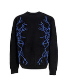 Questo maglione nero presenta una audace stampa laterale di fulmini, insieme al logo. Realizzato pensando al comfort, questo maglione aggiunge un tocco di colore al tuo guardaroba.