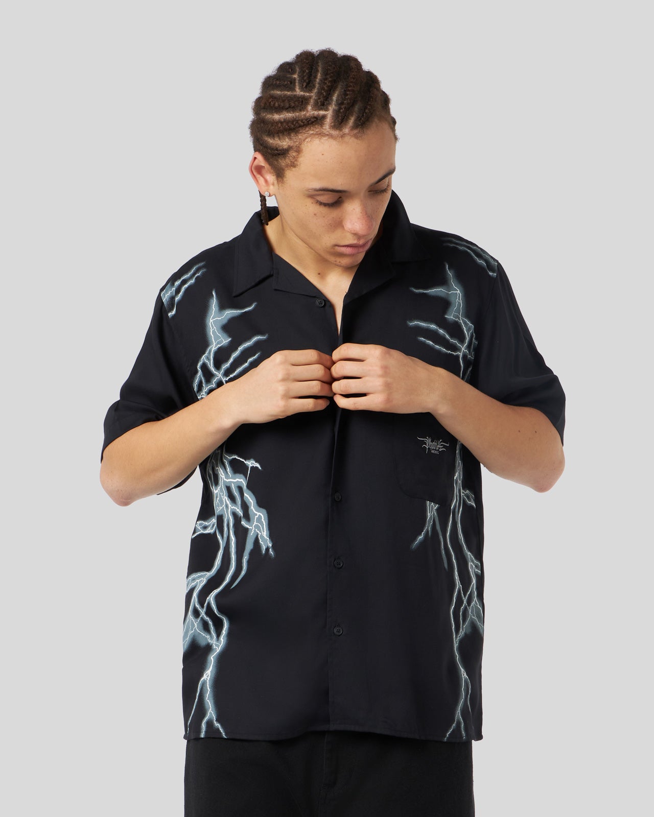 CAMICIA NERA CON FULMINI LATERALI BIANCHI
