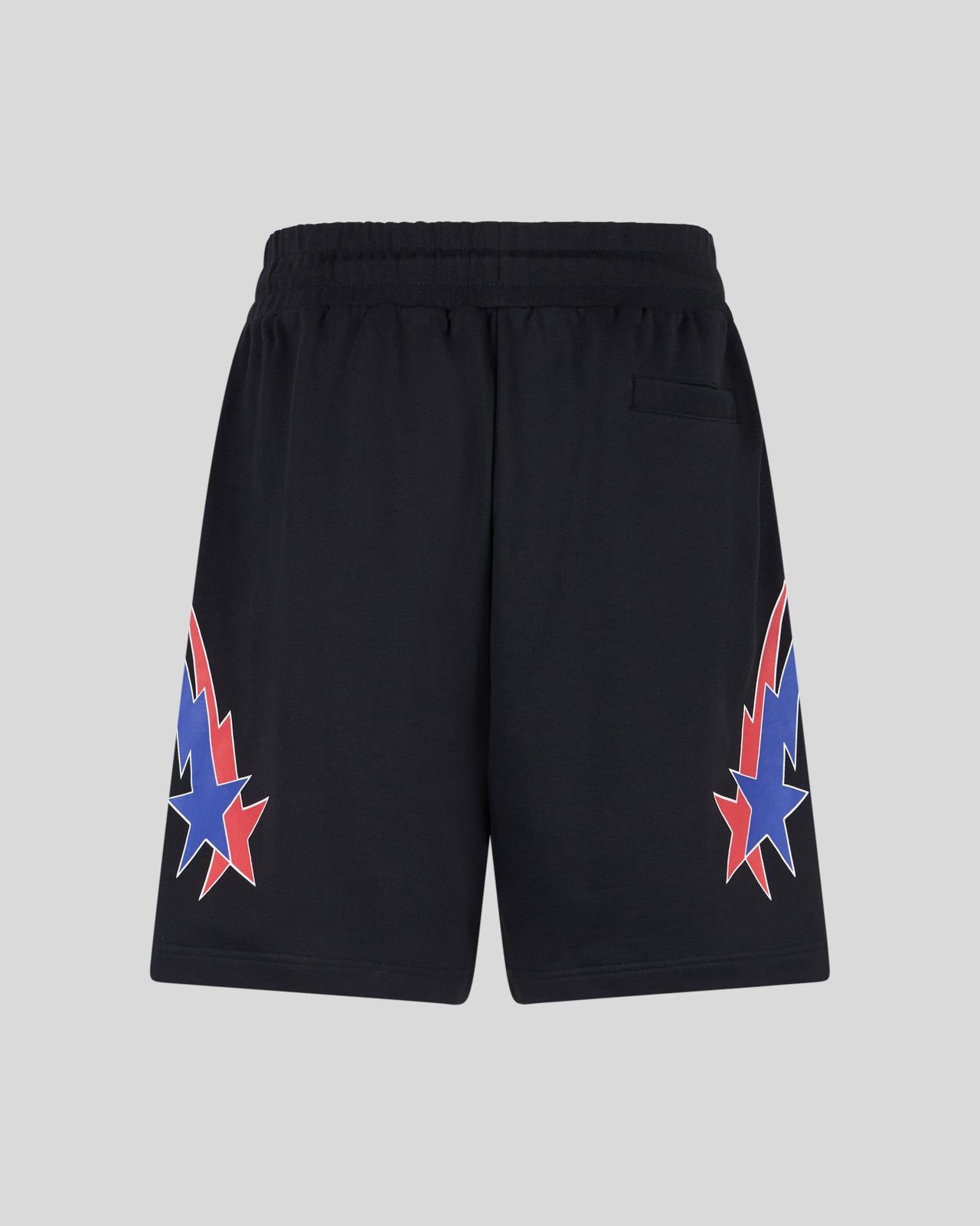 PANTALONCINO NERO CON GRAFICA STARRY LIGHTNING ROSSA E BLU