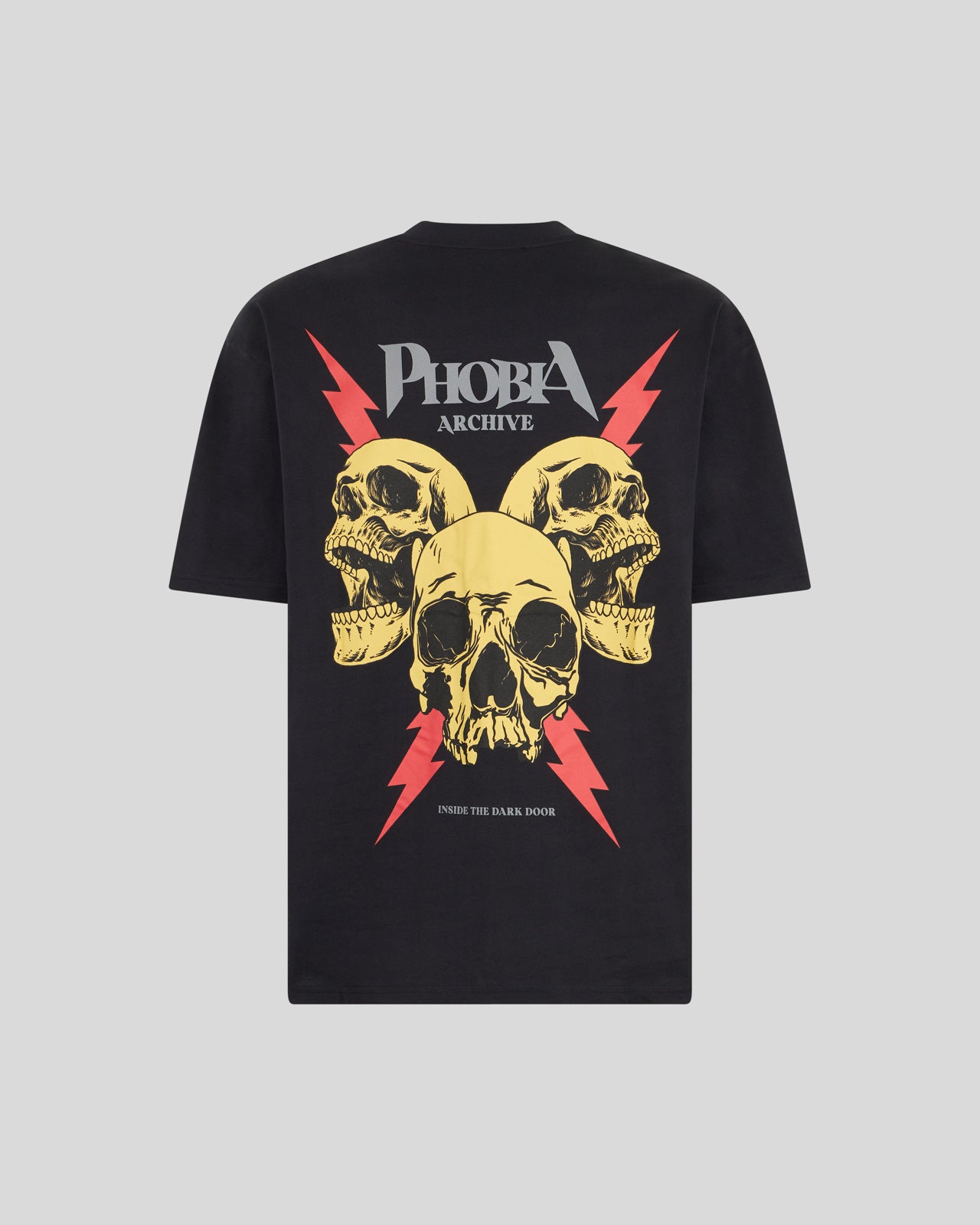T-shirt nera con grafica Screaming Skulls in stampa serigrafica rossa