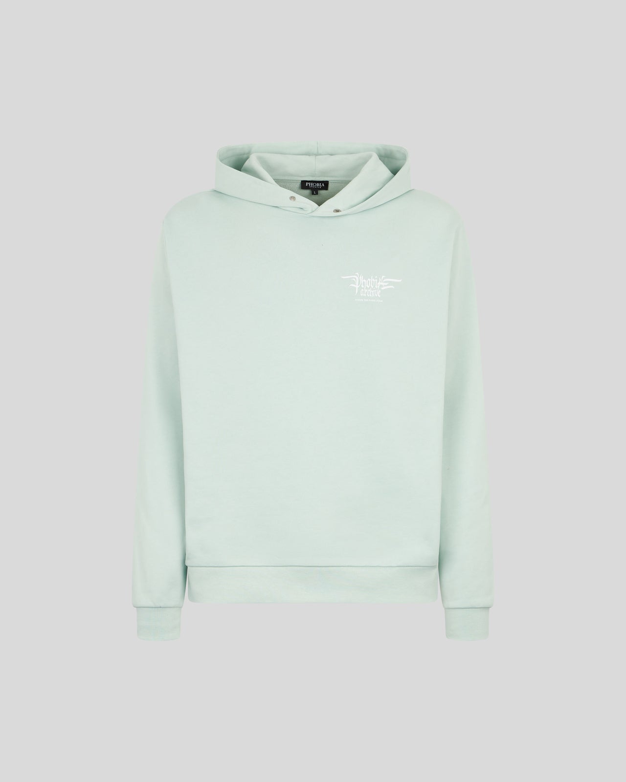 Felpa con cappuccio azzurra con grafica Fiery Cobra in stampa digitale gialla, logo bianco ricamato e bottone in metallo