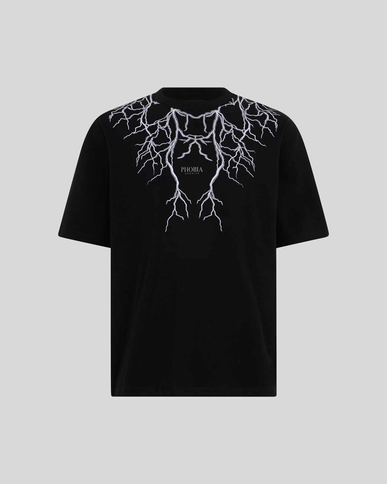 T-SHIRT NERA CON FULMINI GRIGI RICAMATI