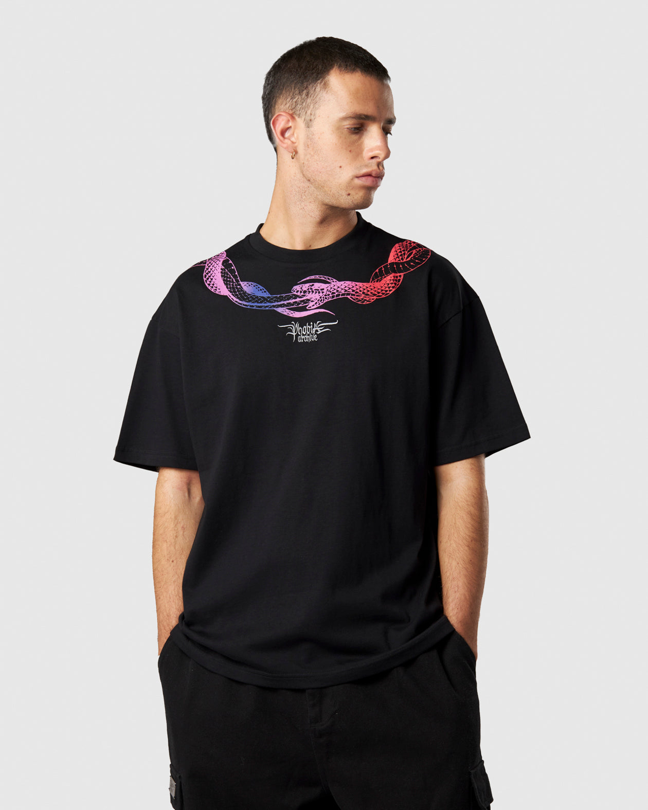 Questa t-shirt in cotone presenta una stampa a cerchio con un serpente, garantendo un look unico e d'impatto. Realizzata in cotone di alta qualità, offre sia comfort che stile.