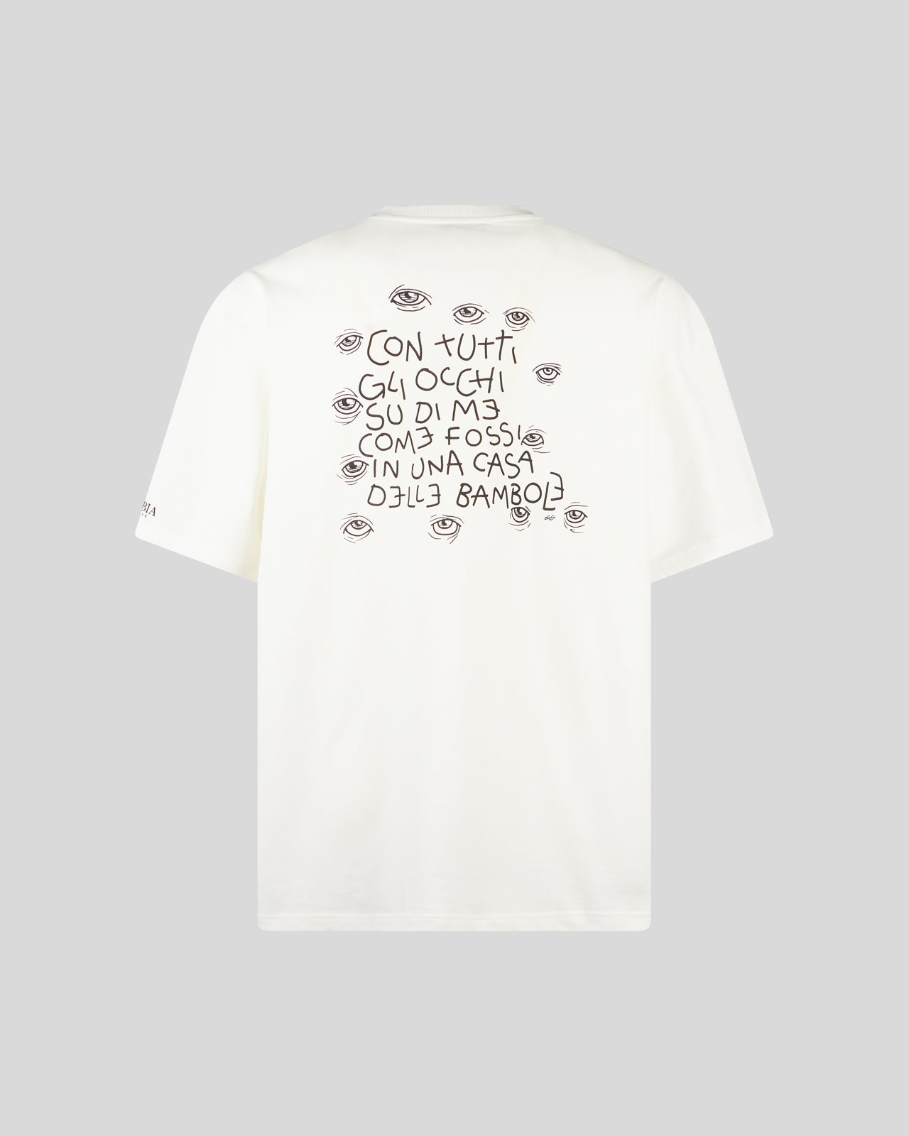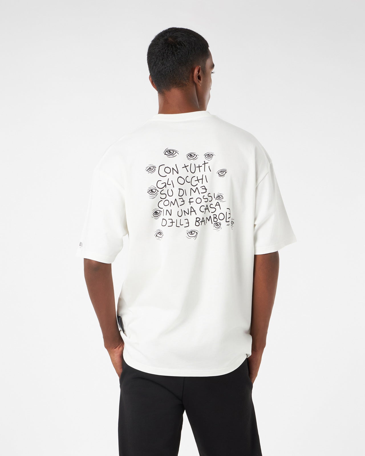 T-shirt bianca nata dalla collaborazione tra Testa di Chezzo e Phobia Archive. La t-shirt presenta due grafiche: una sul lato anteriore e una sul retro. Entrambe le illustrazioni sono serigrafate.