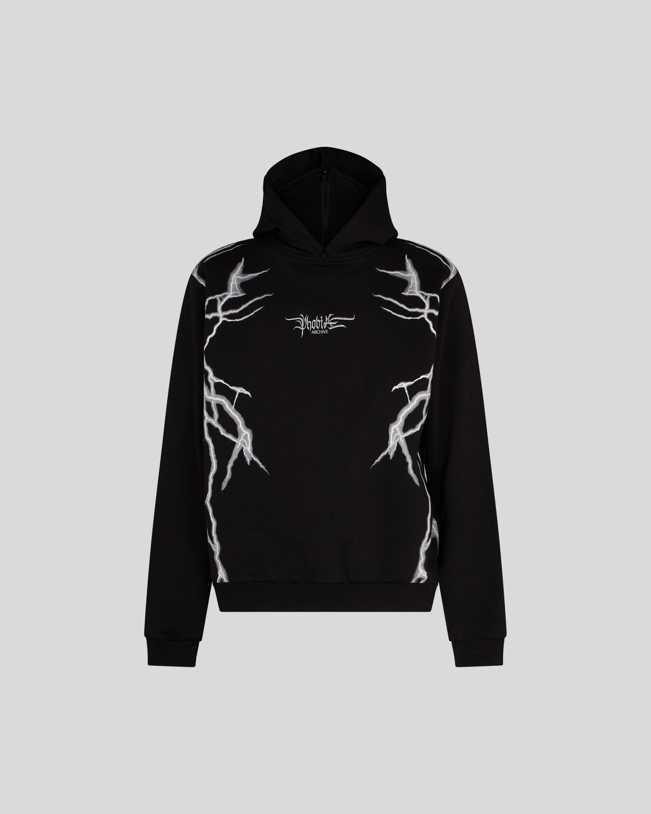 Felpa con passamontagna nera con grafica Lightning in stampa serigrafica grigia e logo ricamato.