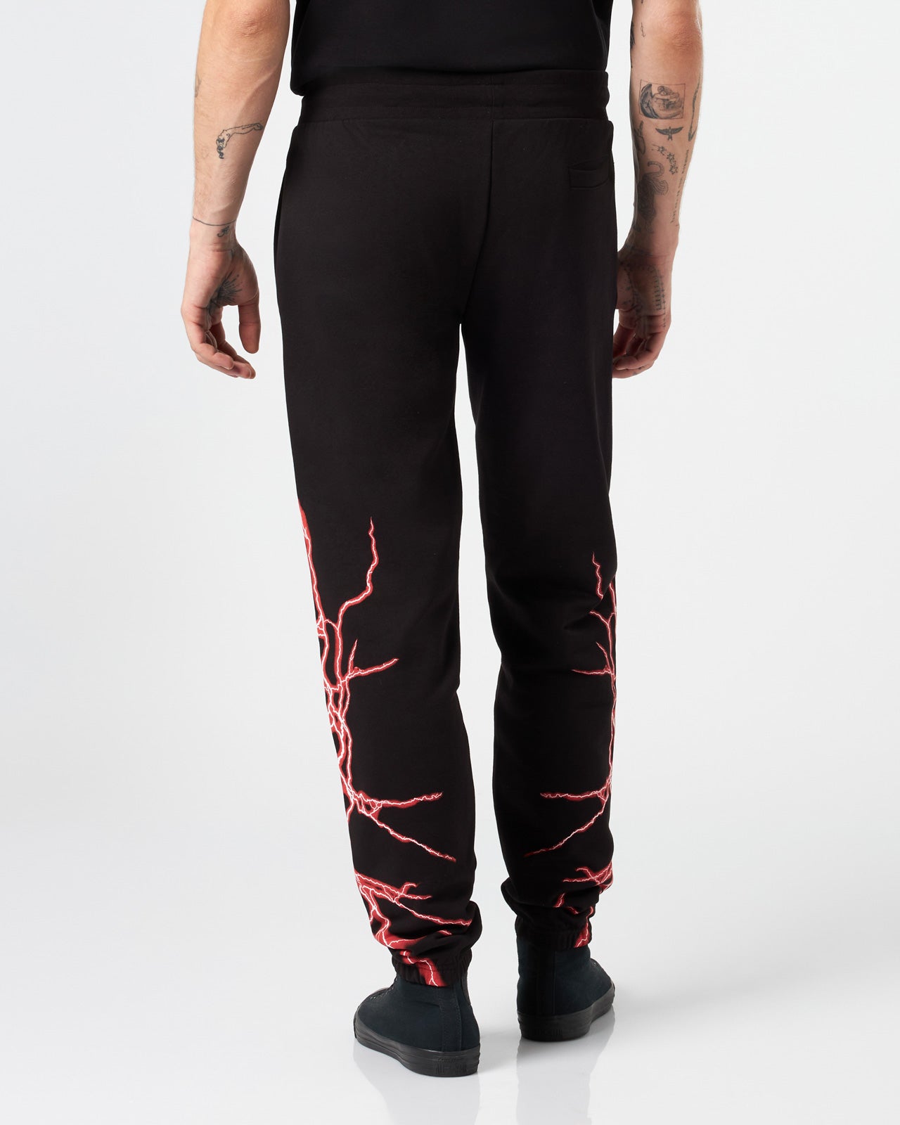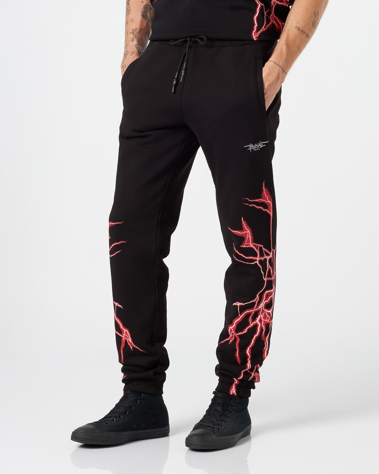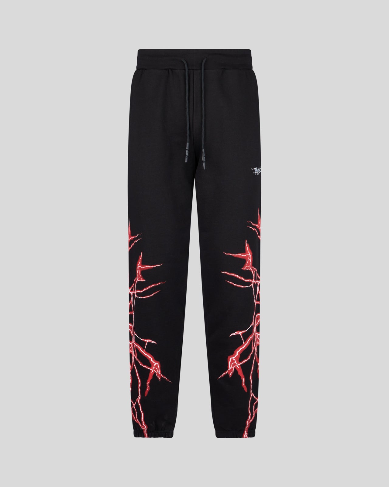 Pantaloni neri con grafica Lightning in stampa serigrafica rossi e logo ricamato.