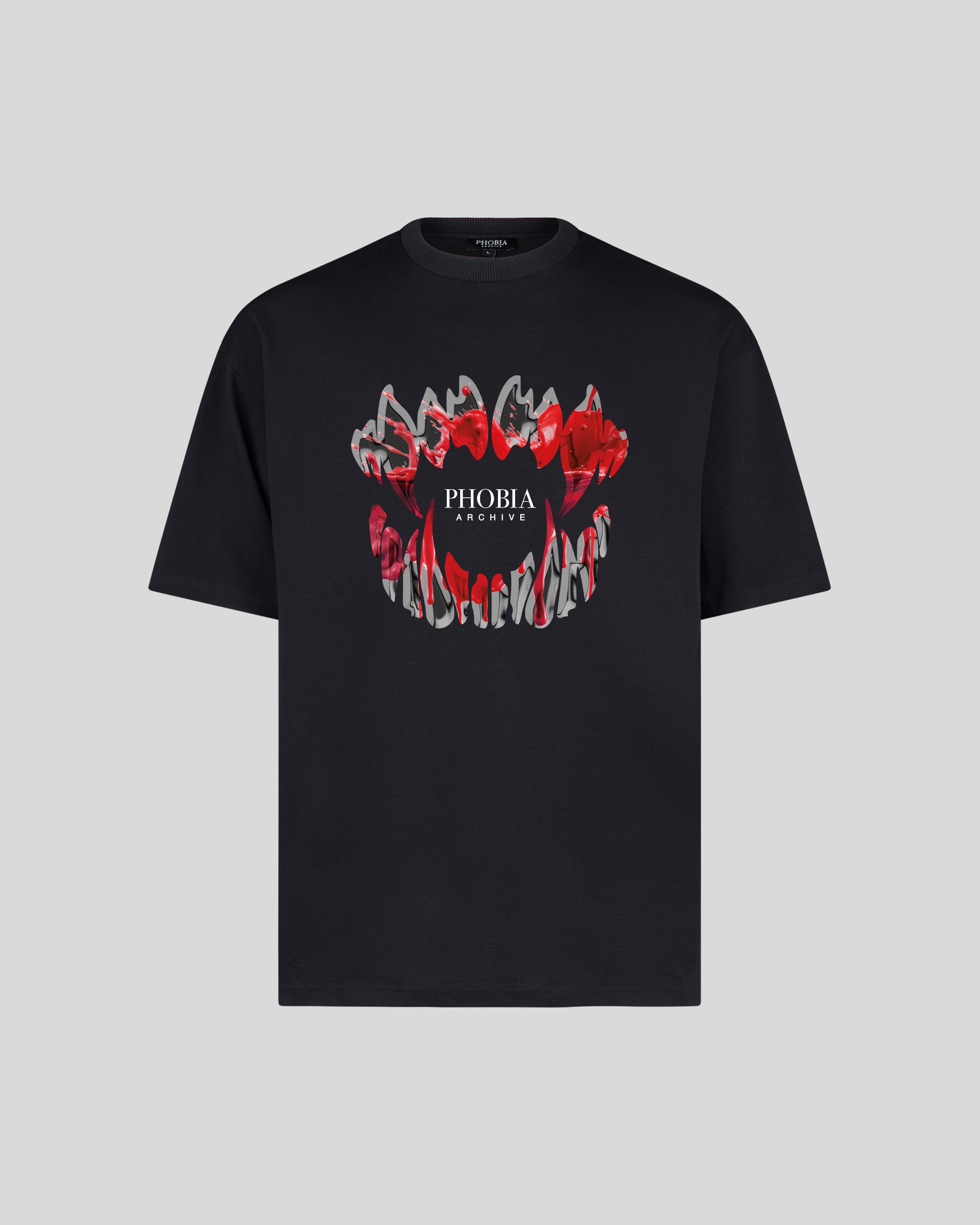 T-SHIRT NERA CON GRAFICA DEMON BITE INSANGUINATA