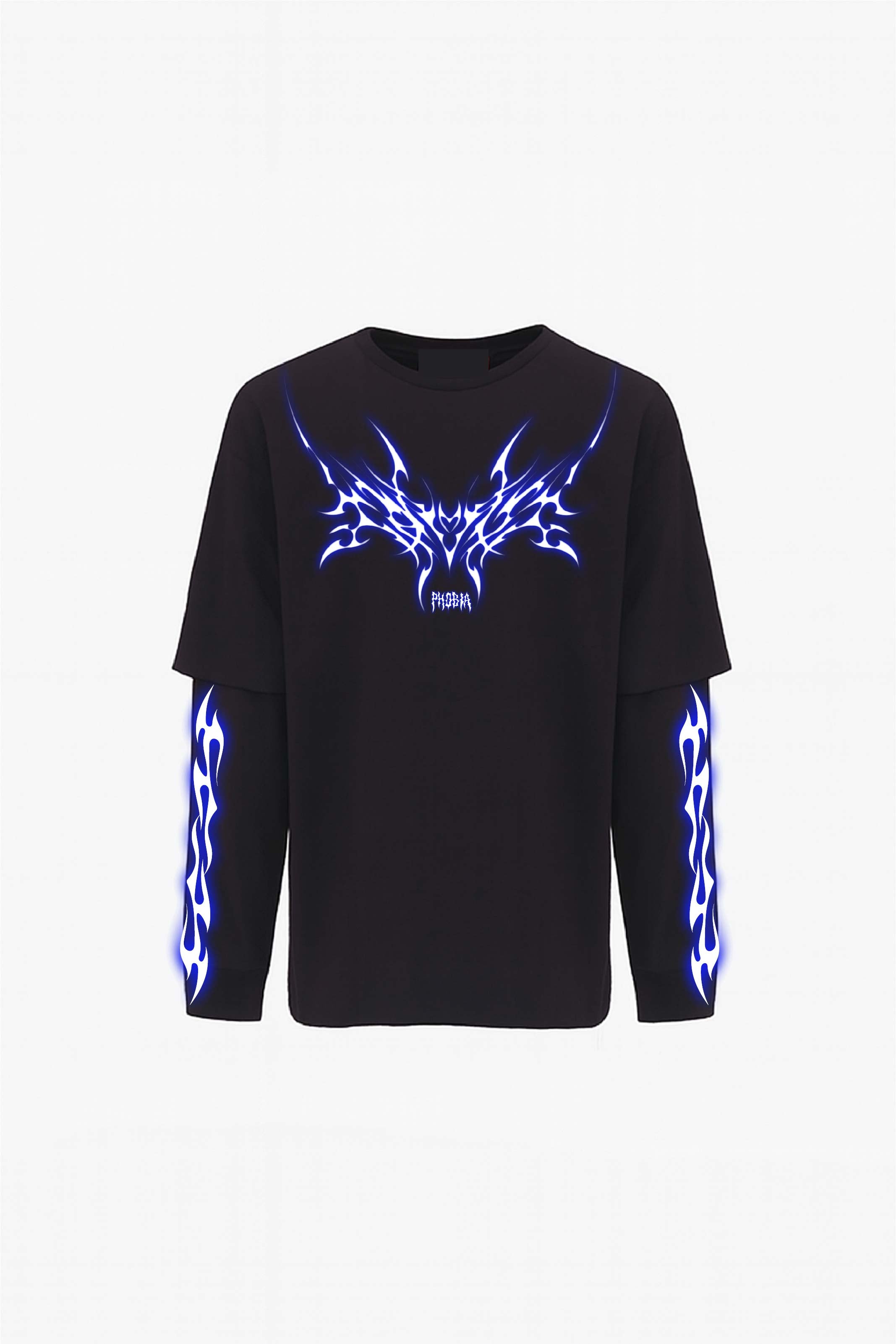 BLACK TEE LONGSLIVE WITH BLUE TRIBAL