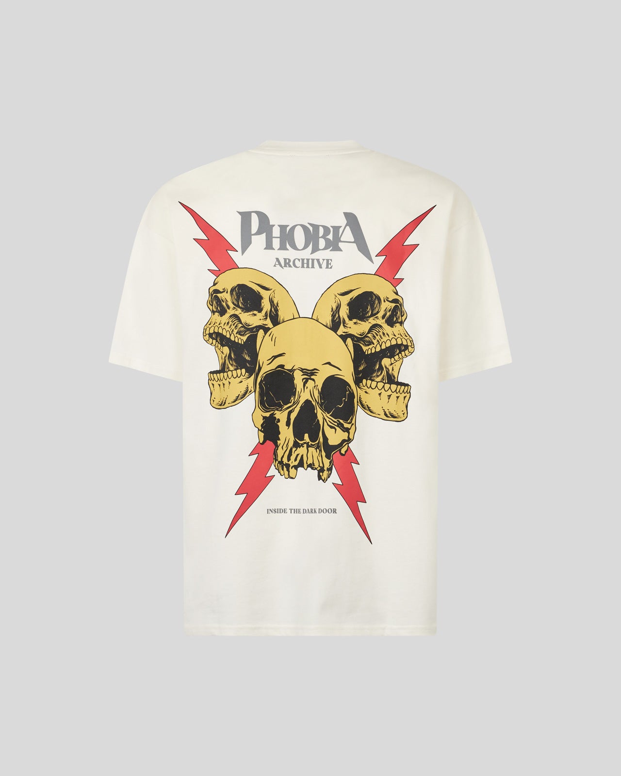 T-shirt bianca con grafica Screaming Skulls in stampa serigrafica rossa