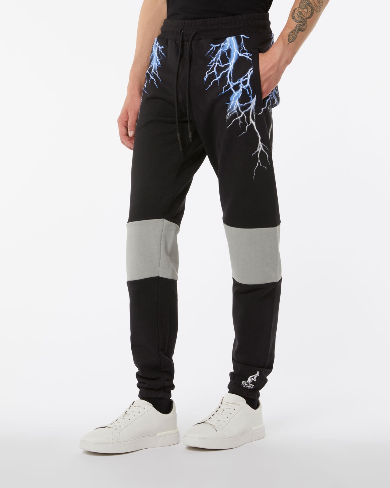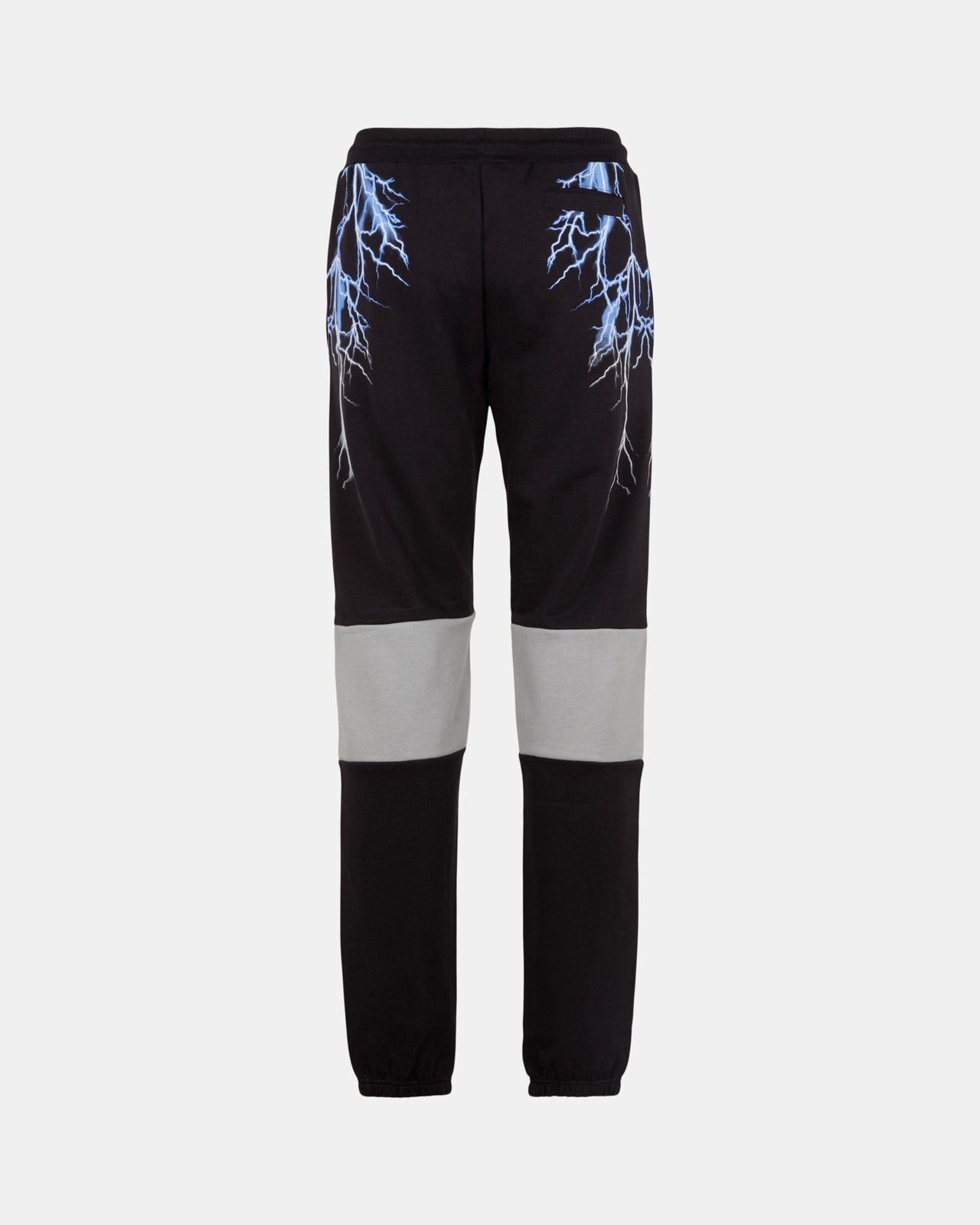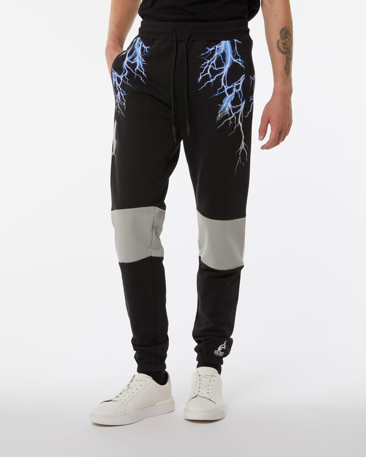 Australian / Phobia Archive special collection black pants. This limited edition collection was created in collaboration with Australian, to connect Phobia Archive’s streetwear with Australian’s sportswear influences. Both legs also have a gray insert at the knees.