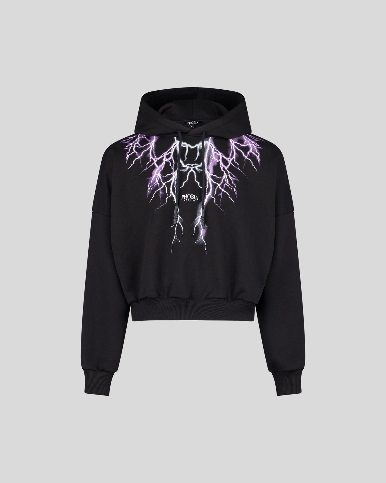 BLACK CROP HOODIE WITH PURPLE GREY LIGHTNING